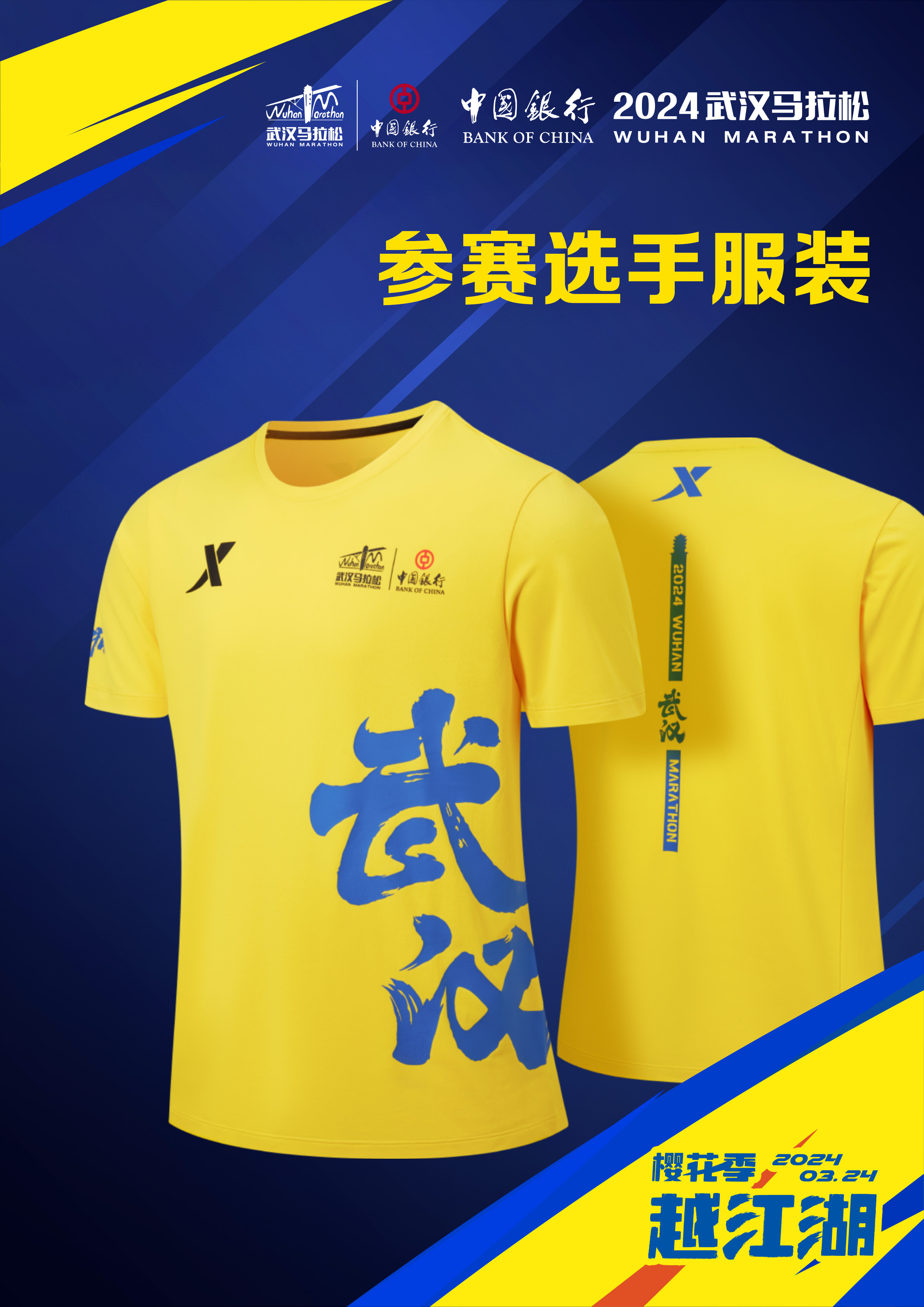 2024汉马参赛T恤回归经典的“汉马黄”,正面图案以“武汉”两个汉字为主体,字体遒劲有力,代表江湖好汉的热情与拼搏。参赛T恤以新光环保纱——SIGMA系列多功能纱为主要材料,添加二氧化钛造就,既蓬松绵密又轻薄速干。
