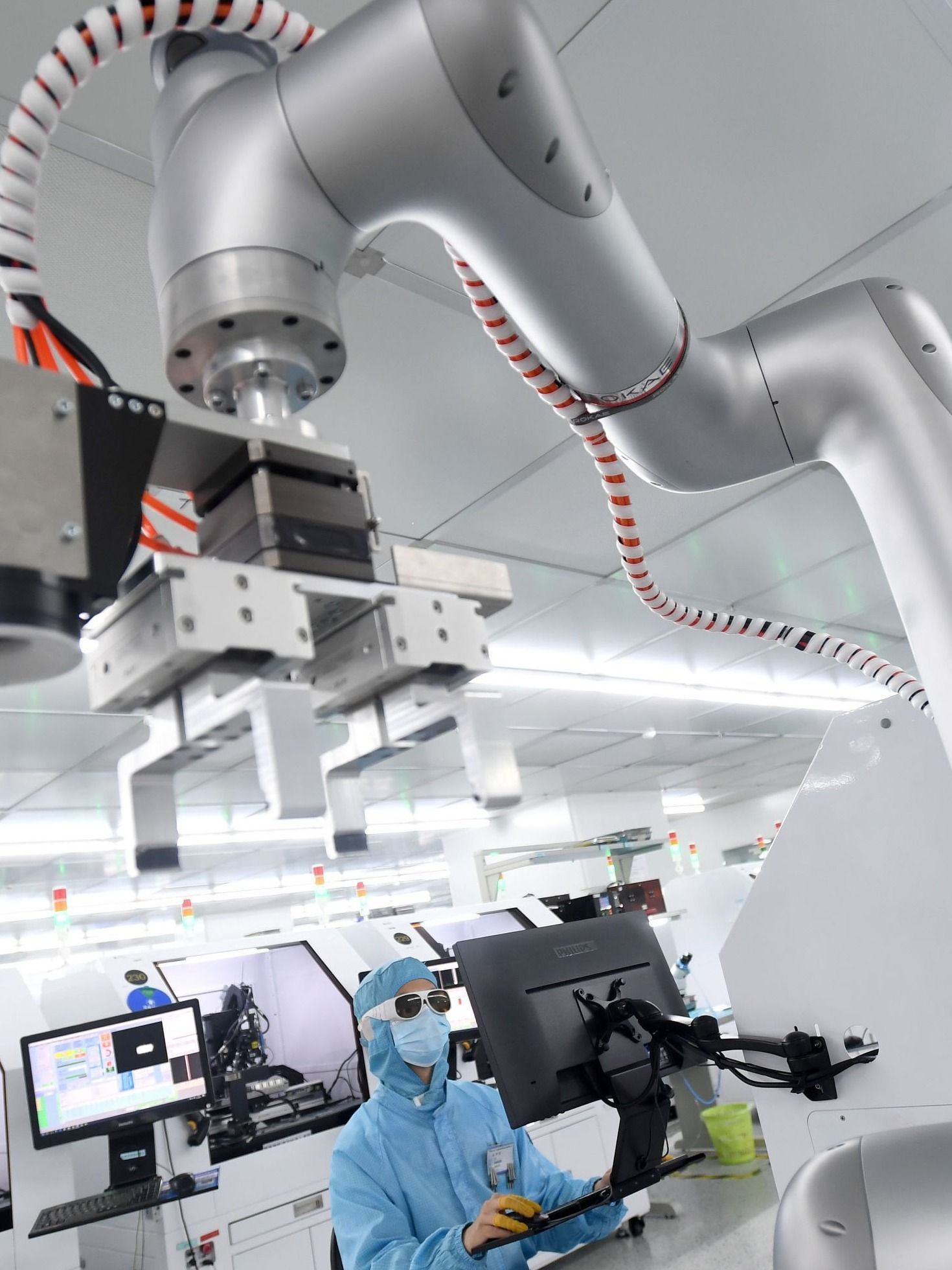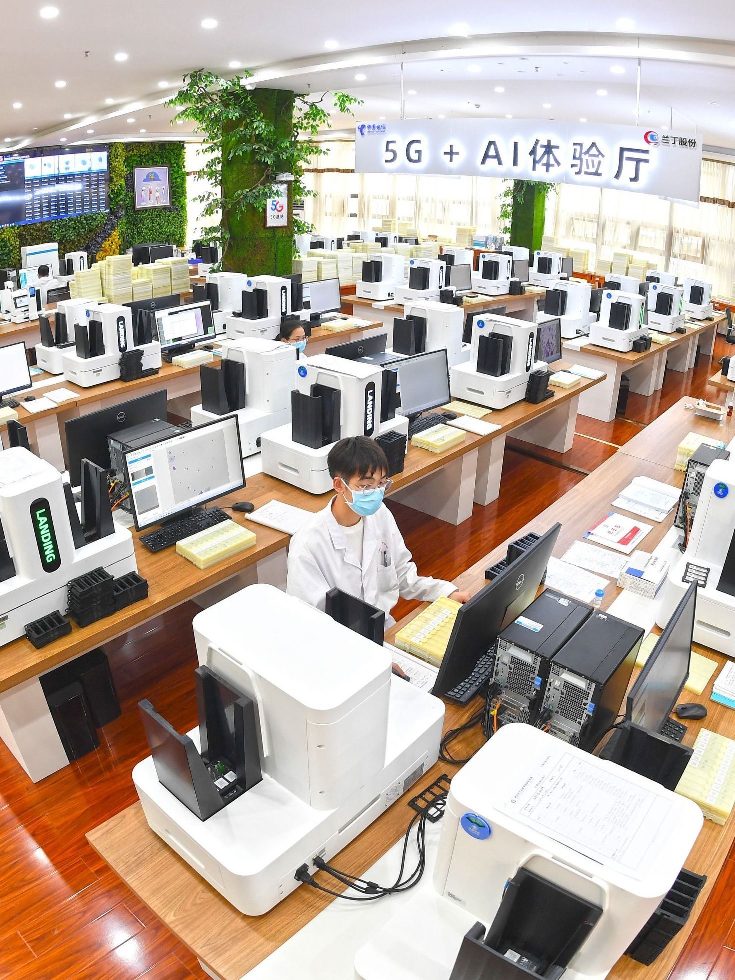武汉兰丁智能医学股份有限公司,科研人员正运用AI(人工智能)机器人工作站进行宫颈癌筛查。长江日报记者 周超 摄