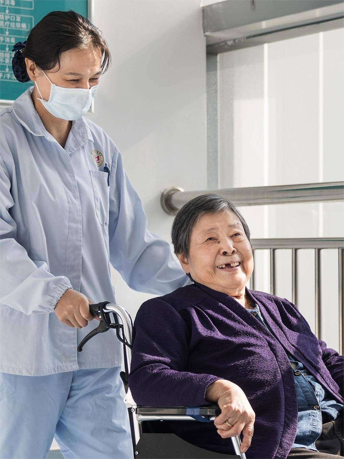 福利院里,护理员陈俊与85岁高龄的朱奶奶聊天。 湖北日报全媒记者任勇 摄