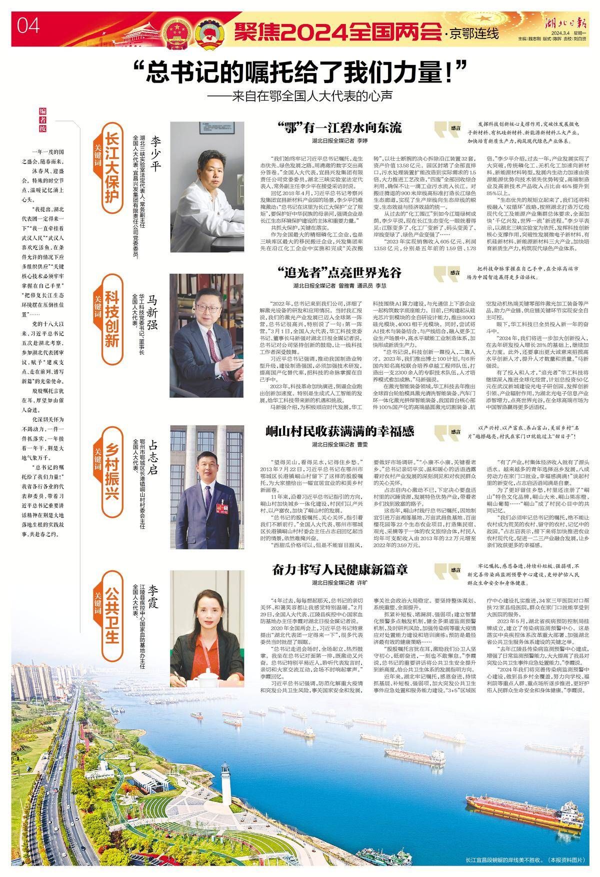 “总书记的嘱托给了我们力量!”我省各行各业的代表和委员,带着习近平总书记重要讲话精神在荆楚大地落地生根的实践故事,共赴春之约。