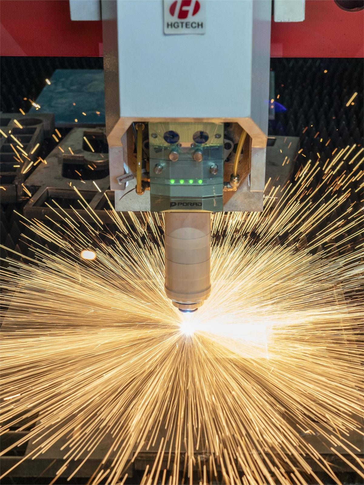 华工科技智能制造产业园,正在测试、校准的智能激光切割机切割钢板。湖北日报全媒记者魏铼 摄