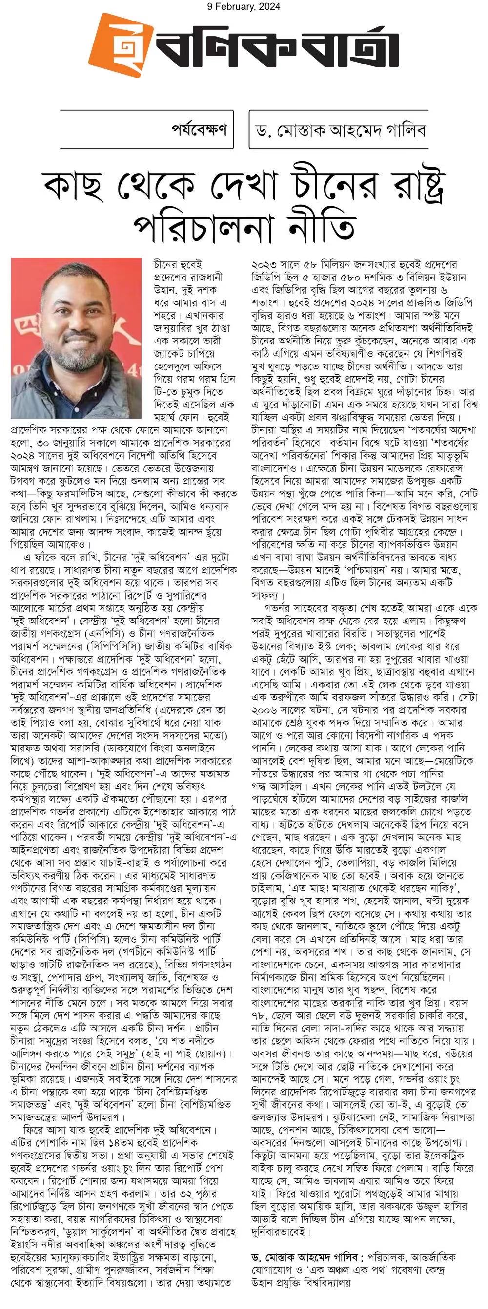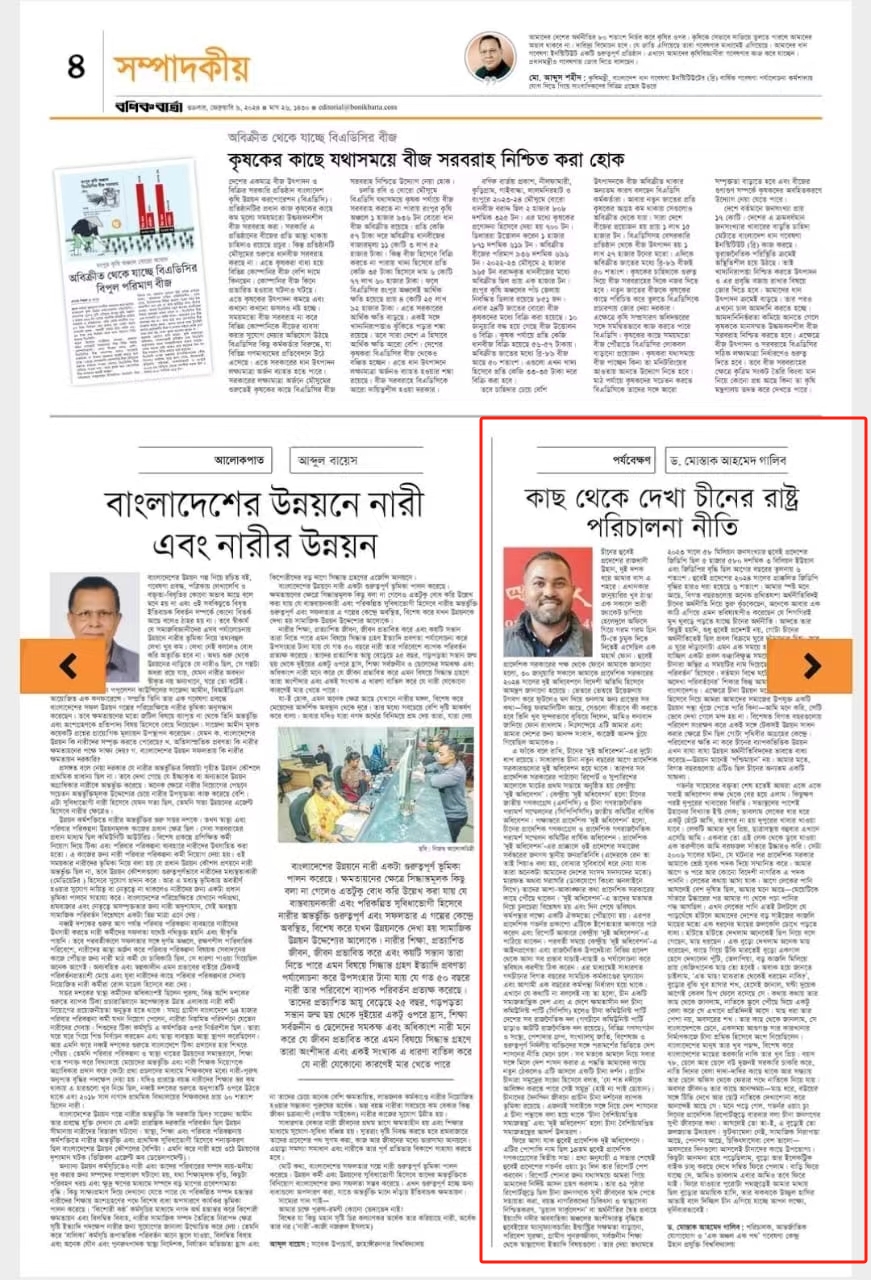 长江日报大武汉客户端3月4日讯(记者范婷婷 通讯员何智超)刚刚过去的农历春节期间,孟加拉国主流媒体之一的《商人通讯》(Bonik Barta)刊登在汉外籍人士撰写的孟加拉语文章《我眼中的中国式治理》。此文作者为在汉生活20余年的孟加拉国外教莫斯塔克·阿赫迈德·加力布,他生动讲述了自己今年1月底参加湖北省两会期间感受到的中国式现代化。