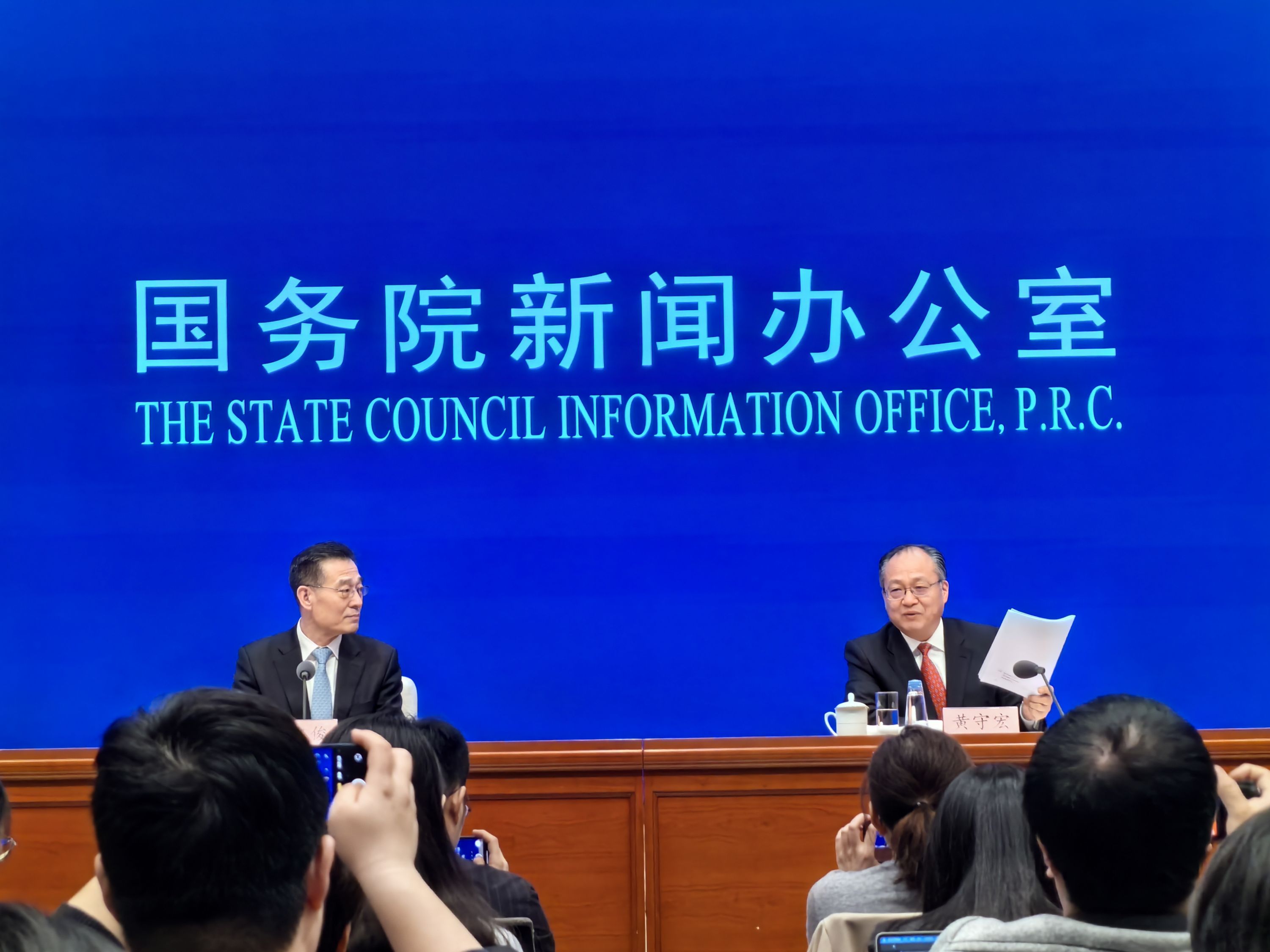 国务院新闻办公室举行吹风会解读《政府工作报告》 记者柯立 摄