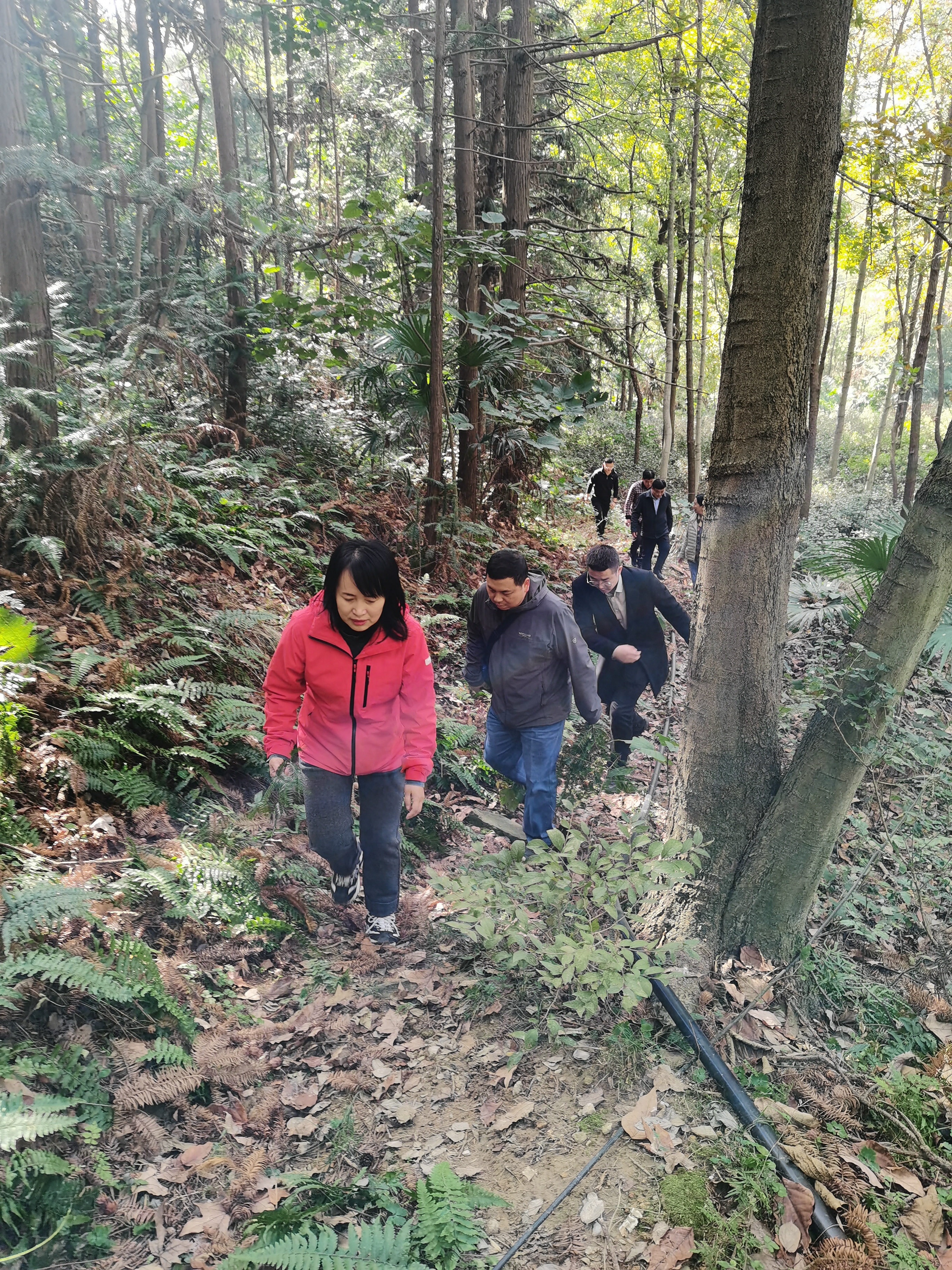 2023年,刘爱(前)深入黄陂山区,检查古树名木保护情况。 (市园林和林业局 供图)
