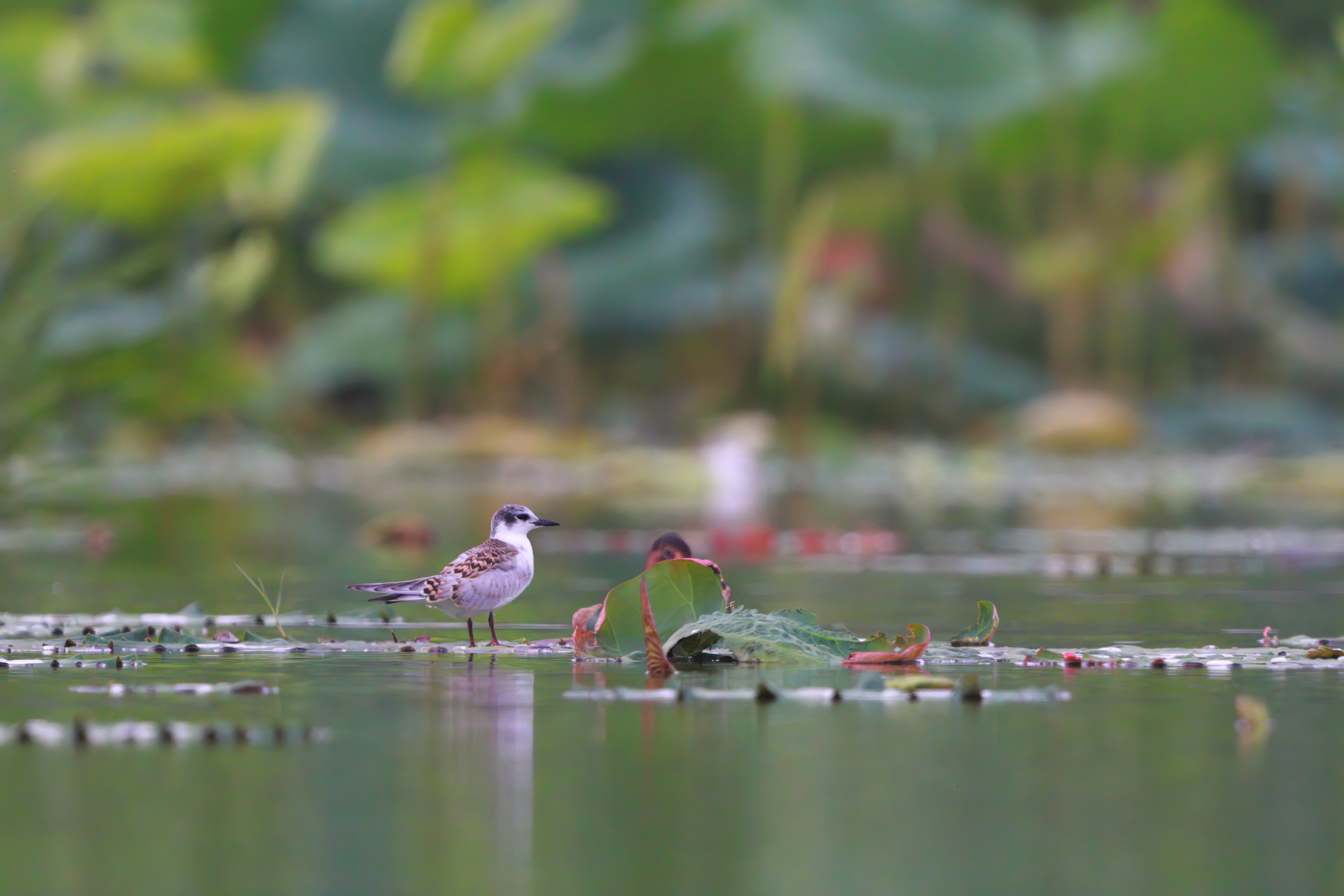 去年夏天暂停水草清理后,万家湖公园繁殖的灰翅浮鸥幼鸟。 颜军 摄
