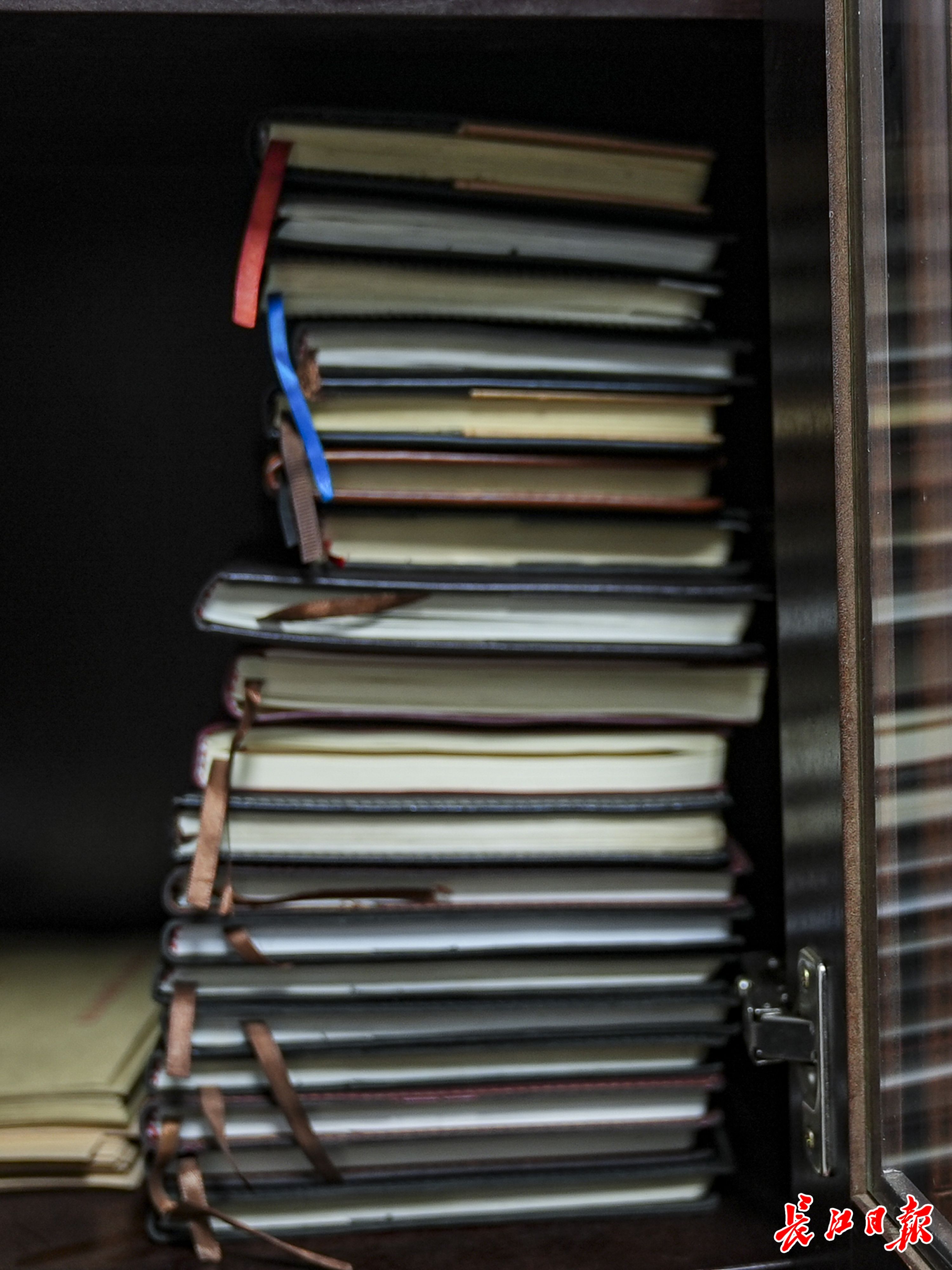 钱锋工作多年写满的记录本,厚厚一摞。长江日报记者胡冬冬 摄