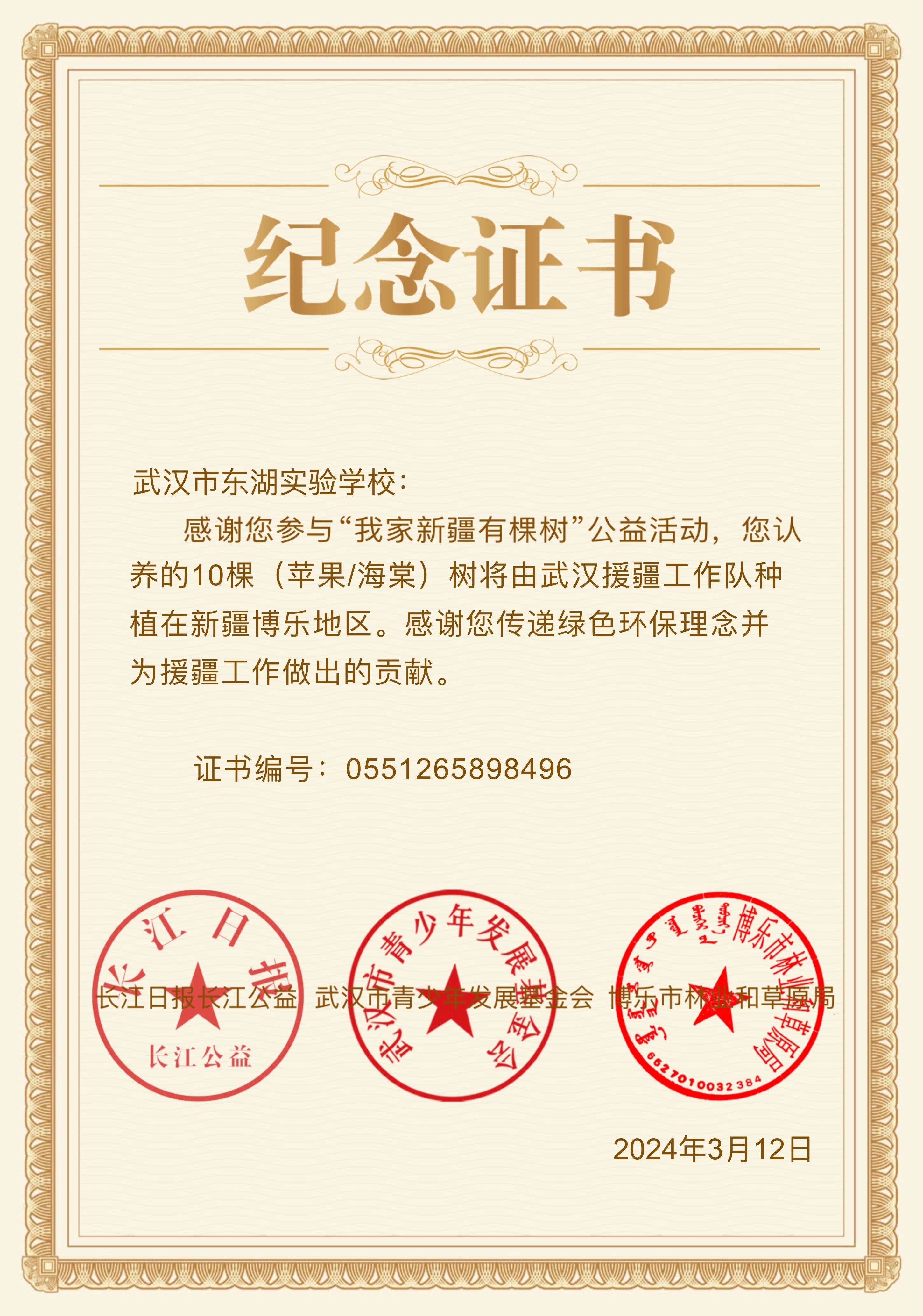 还有洪山区第三小学、洪山区第十小学、武珞路实验小学、武汉市实验幼儿园、东湖新城小学等众多学校陆续参与到活动中来,老师与同学们积极认捐树木,为新疆边陲地区生态环境贡献自己的力量。