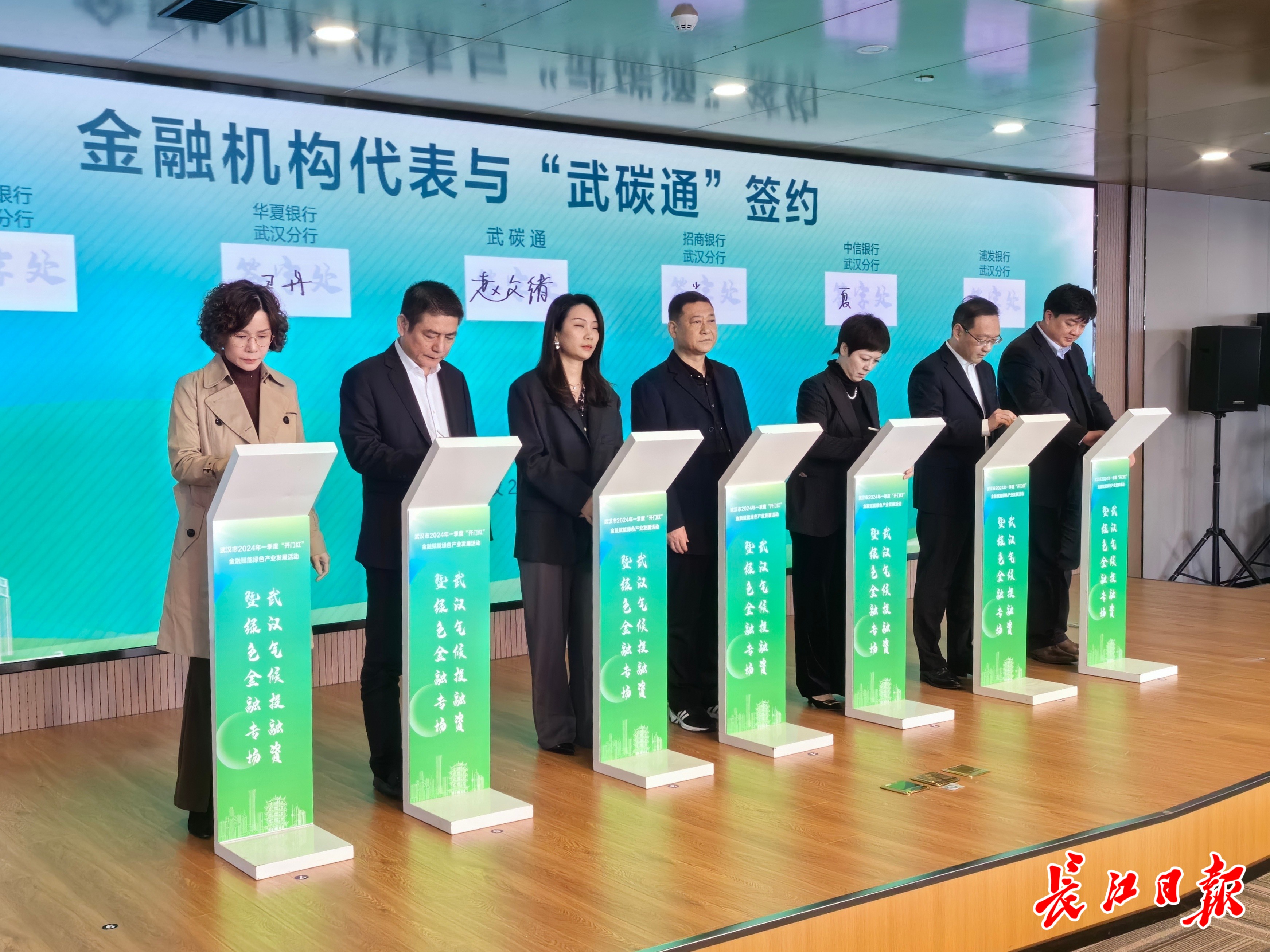长江日报大武汉客户端3月14日讯(记者覃柳玮 通讯员杨贝衣)14日上午,武汉市2024年一季度“开门红”金融赋能绿色产业发展——武汉气候投融资暨绿色金融专场活动在武昌区中碳登大厦举行。一批金融机构、企业、投融资平台与“武碳通”签约,聚焦绿色金融创新成果,助力气候投融资试点持续“向绿”而行。