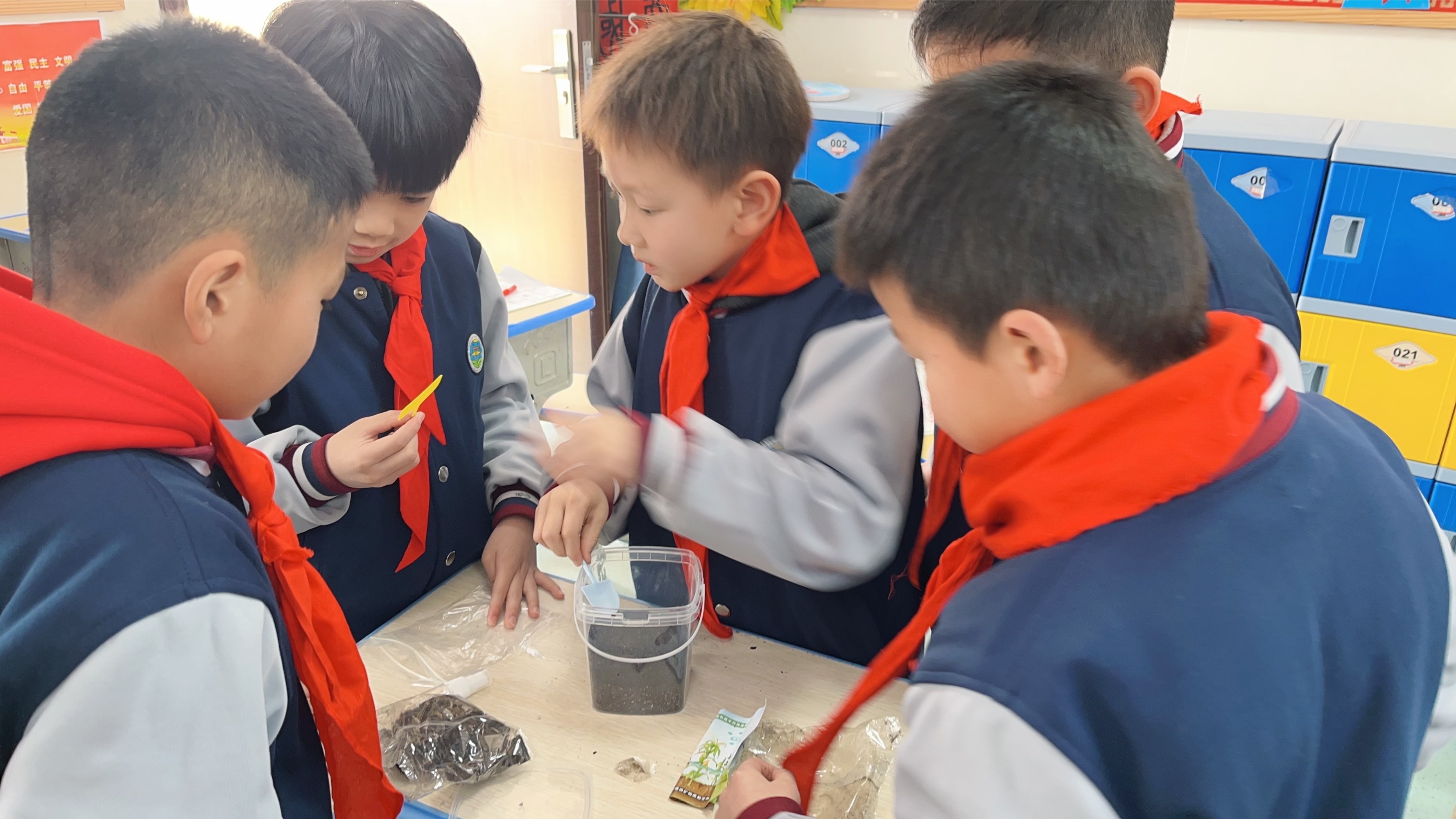 该校303向日葵中队的同学们不仅集体云认捐了树木,还在课余时间亲身体验了“种树”的乐趣。他们几人一组,共同在容器内种下一颗种子,随后几天记录种子发芽、成长的情况。