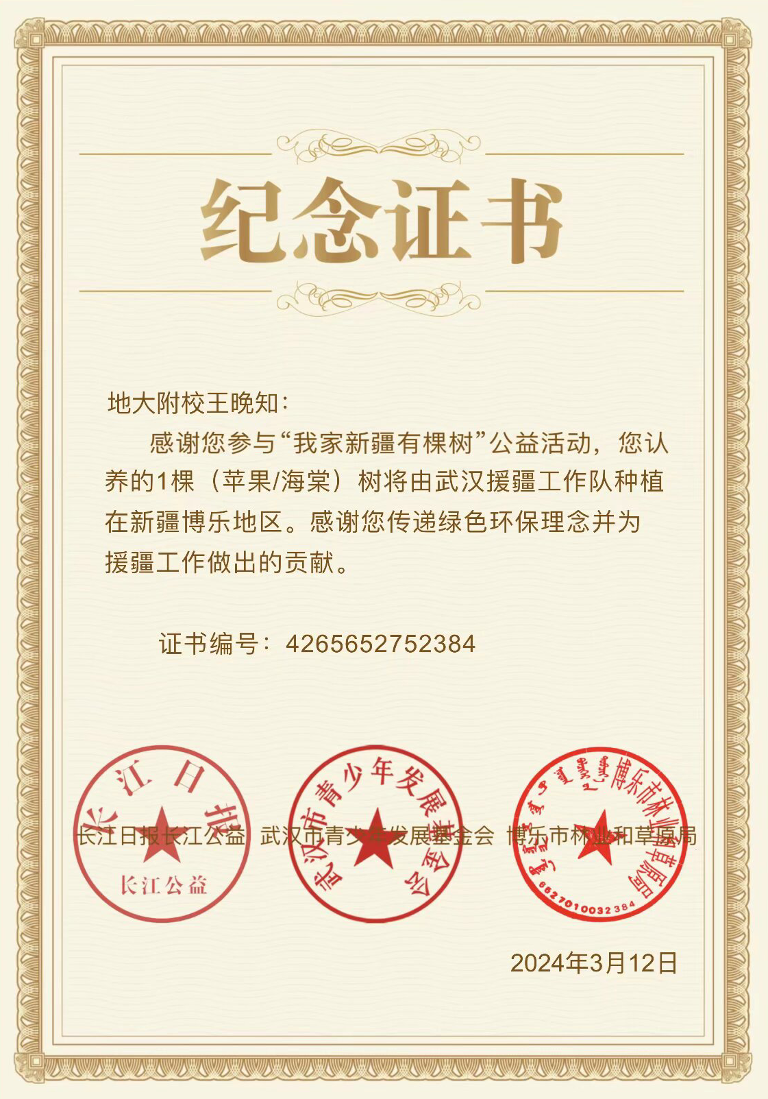 长江日报大武汉客户端3月14日讯(记者唐婧妮)“想种树的风,拂过我们的校园”。自从“我家新疆有棵树——武汉青年林”特别公益行动启动以来,在中国地质大学(武汉)附属学校,一场热情的“云捐树”活动正在如火如荼地进行,孩子们纯真的心被远在新疆的戈壁滩和绿色的希望所牵引。