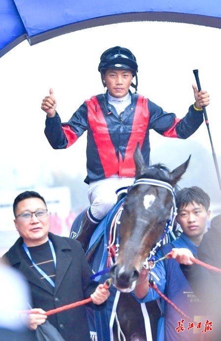第三场“江城杯”4岁及以上纯血马1000米的比拼中,老将麻连凯策骑胯下的“星腾爱将”后来居上,完成逆袭,将头马奖杯和25万元的奖金收入囊中。