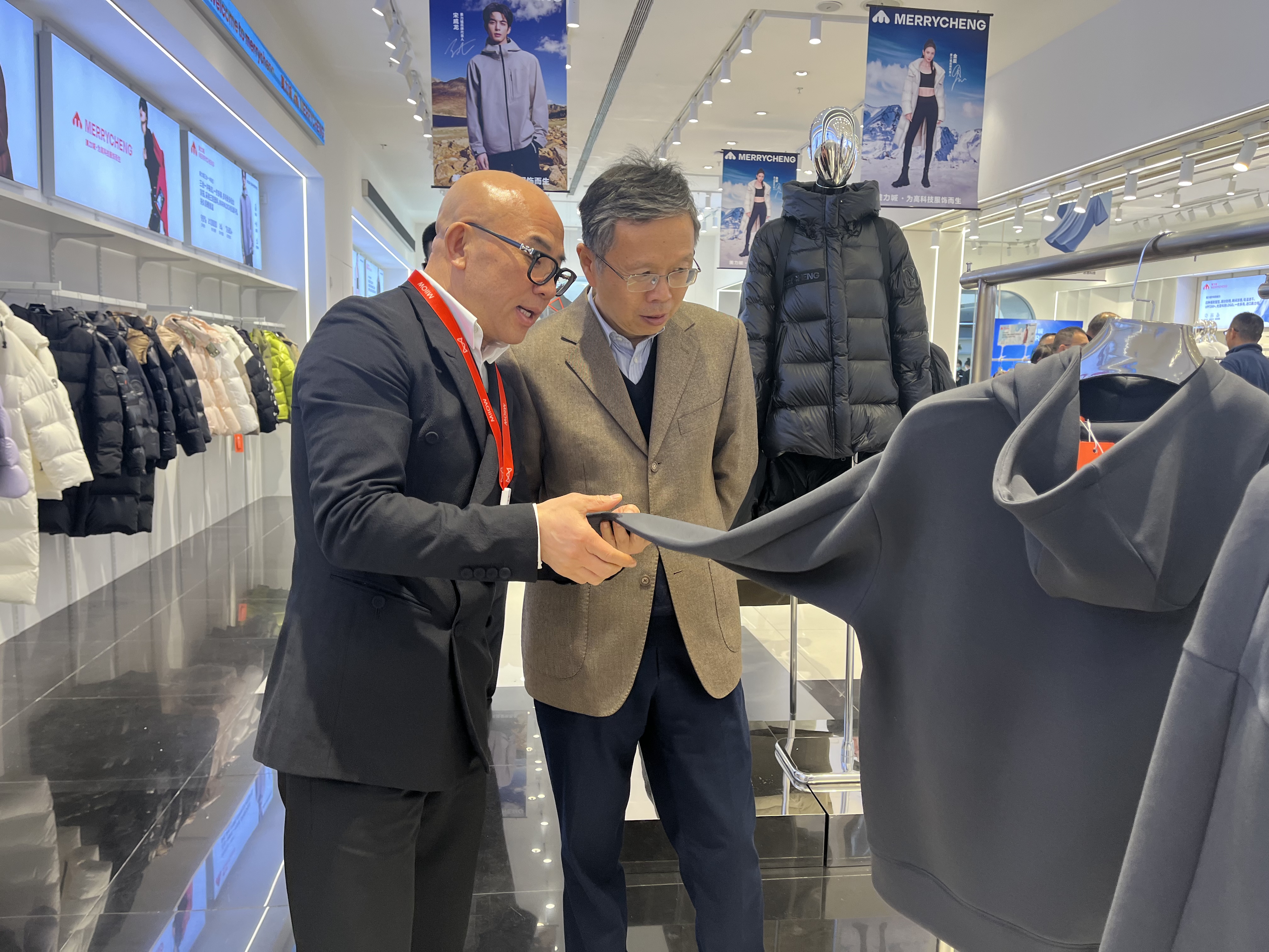 代表们在武汉猫人制衣的企业展厅,近距离观摩产品。 通讯员杜斌 摄