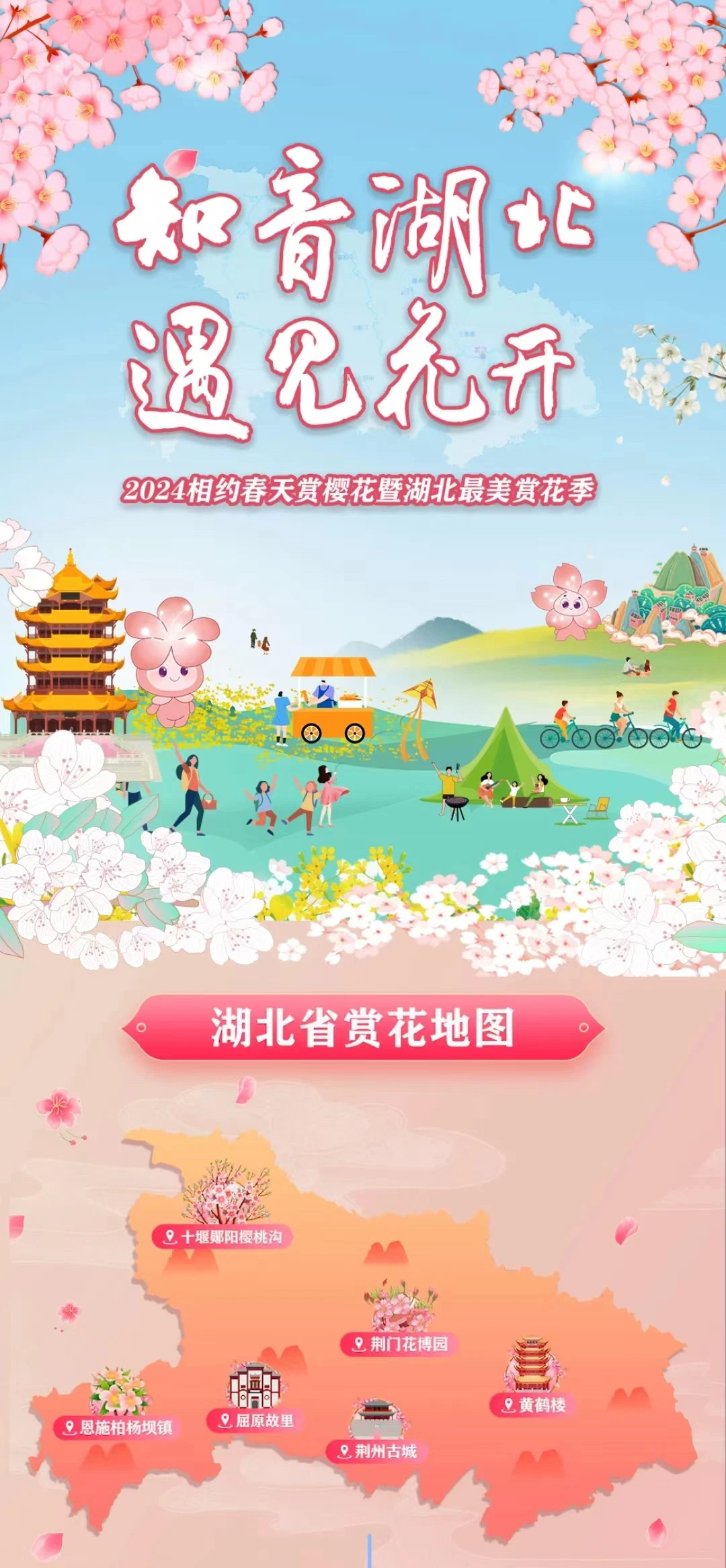 长江日报大武汉客户端3月20日讯(记者李文婕 通讯员鄂文旅)3月20日,2024“相约春天赏樱花”暨湖北最美赏花季文旅系列活动拉开帷幕,湖北省文化和旅游厅发布湖北赏花地图。
