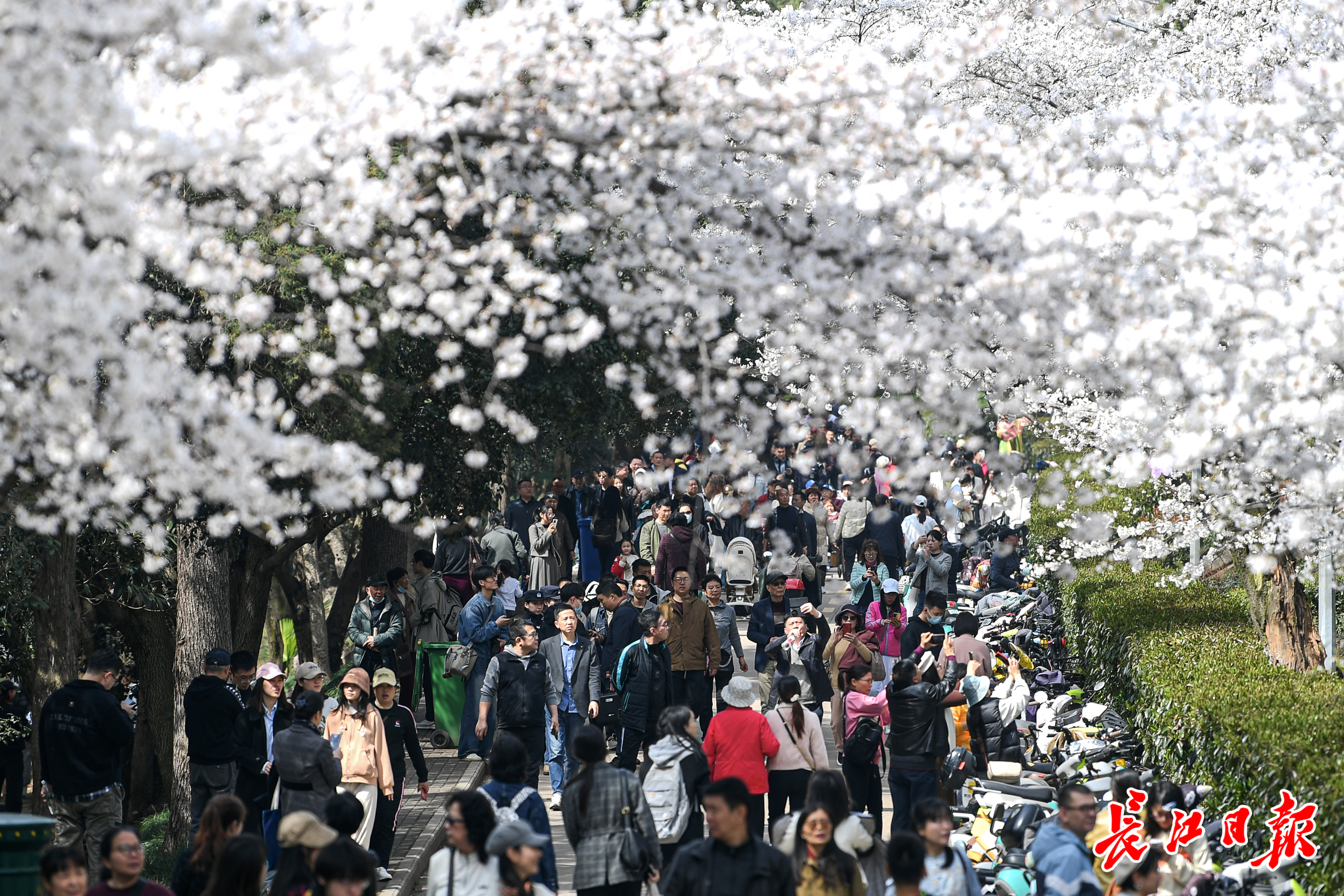 3月19日,武汉大学樱花大道上,盛开的樱花沐浴着阳光。长江日报记者史伟 摄