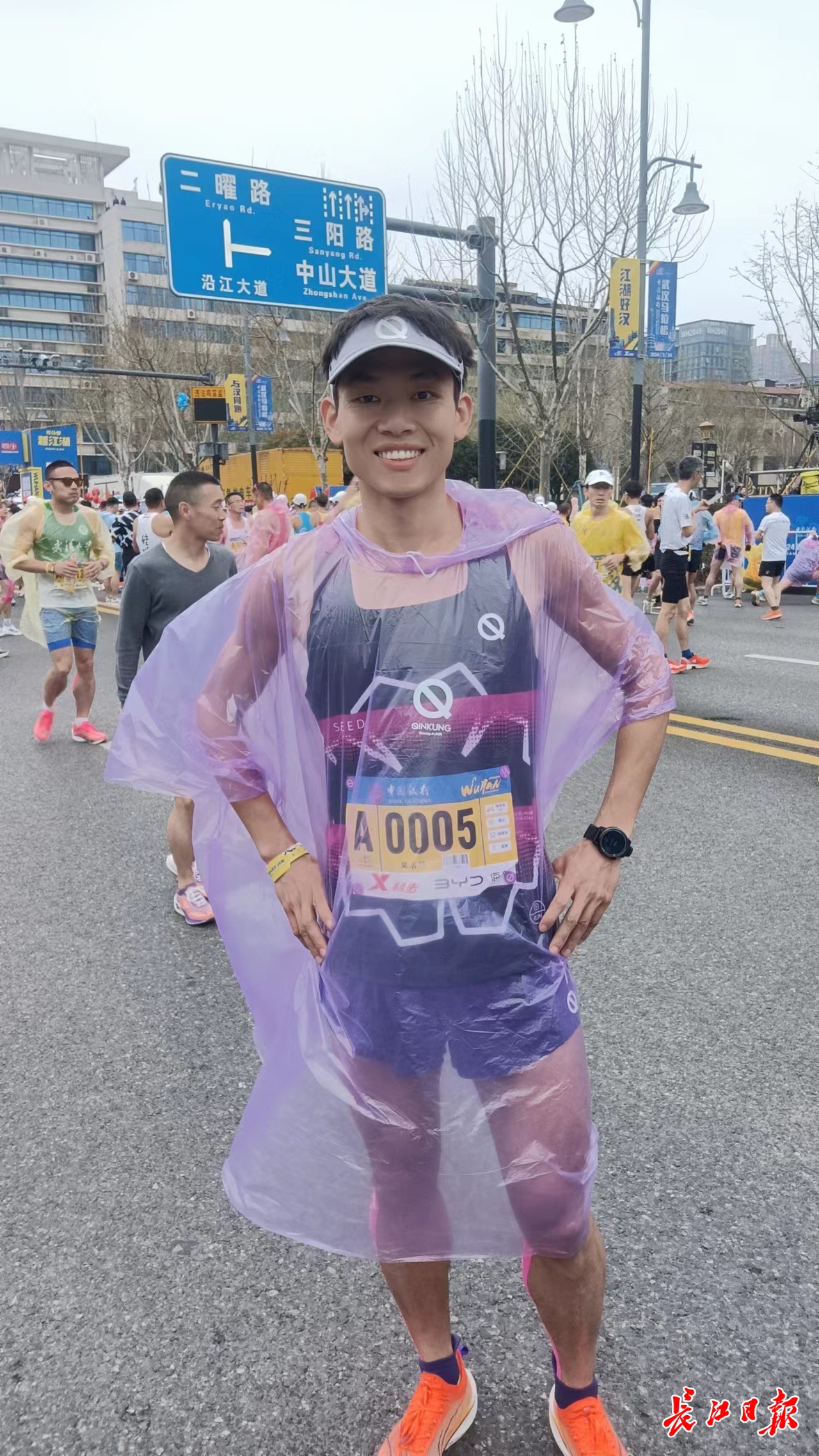 长江日报大武汉客户端3月24日讯(记者李爱华)5年前,他还是一名默默无名的务农小伙,如今在跑圈小有名气。武汉马拉松起点,来自湖北咸宁通山的吴浩然豪气干云,今天要挑战自己的最好成绩。