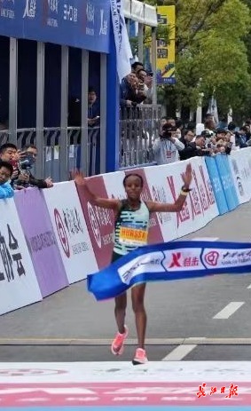 来自埃塞俄比亚的马尔·迪巴巴·胡萨夺得2024年武汉马拉松全程项目的女子组冠军。成绩是2小时25分12秒,打破了汉马赛会纪录。