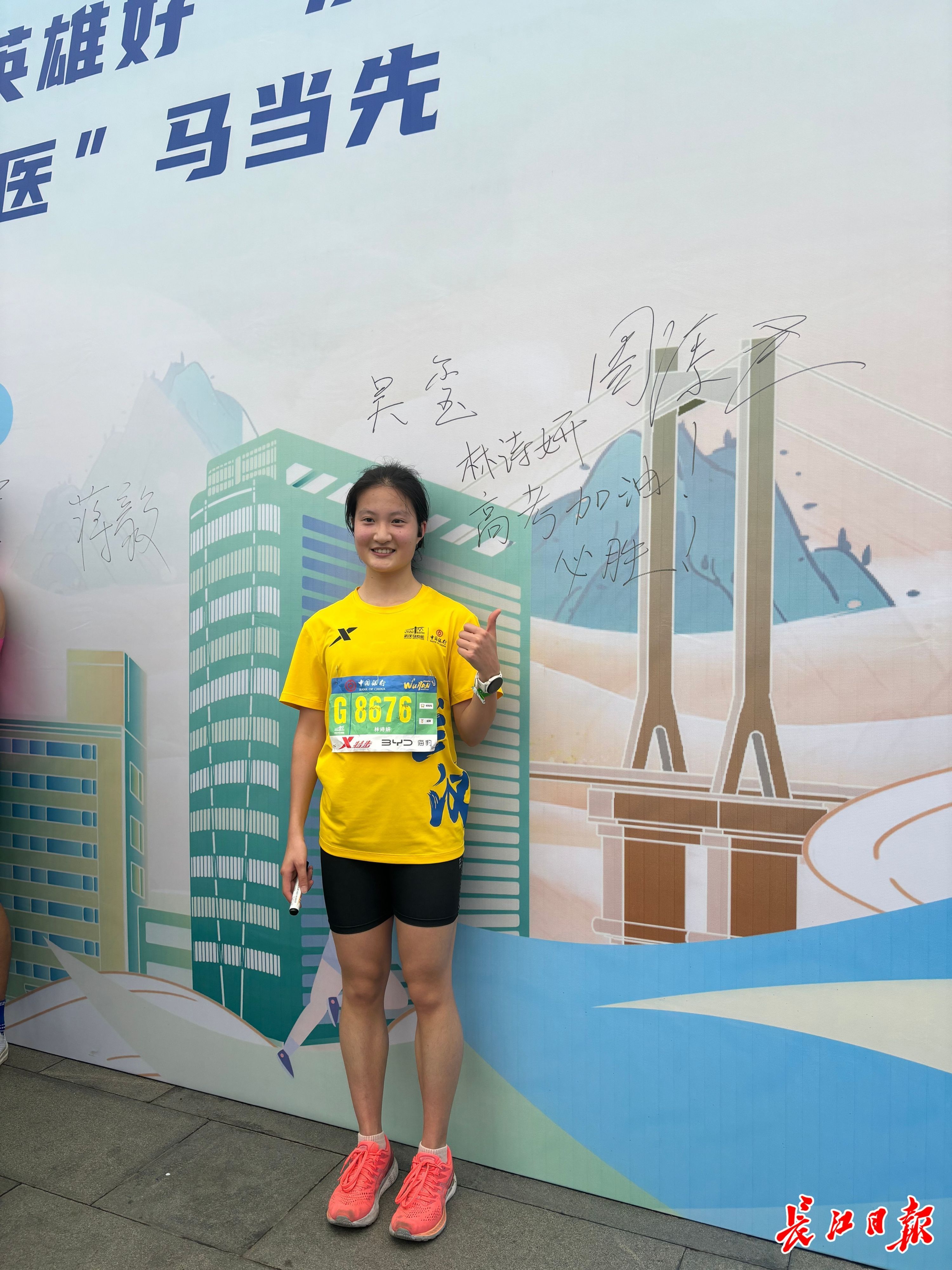 2024武汉马拉松13公里健康跑第一个抵达终点的女子选手,是来自湖北省实验中学高三学生林诗妍。