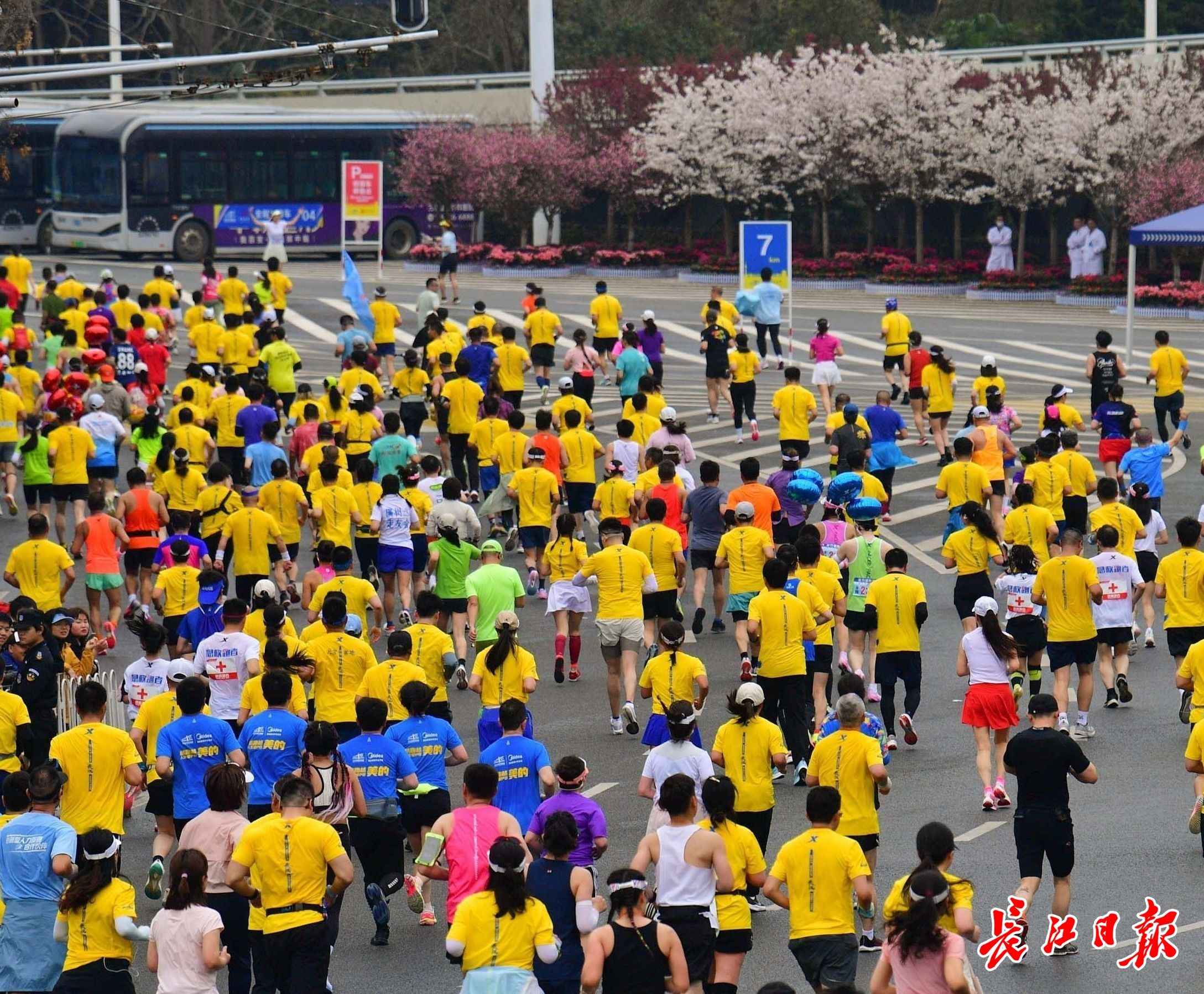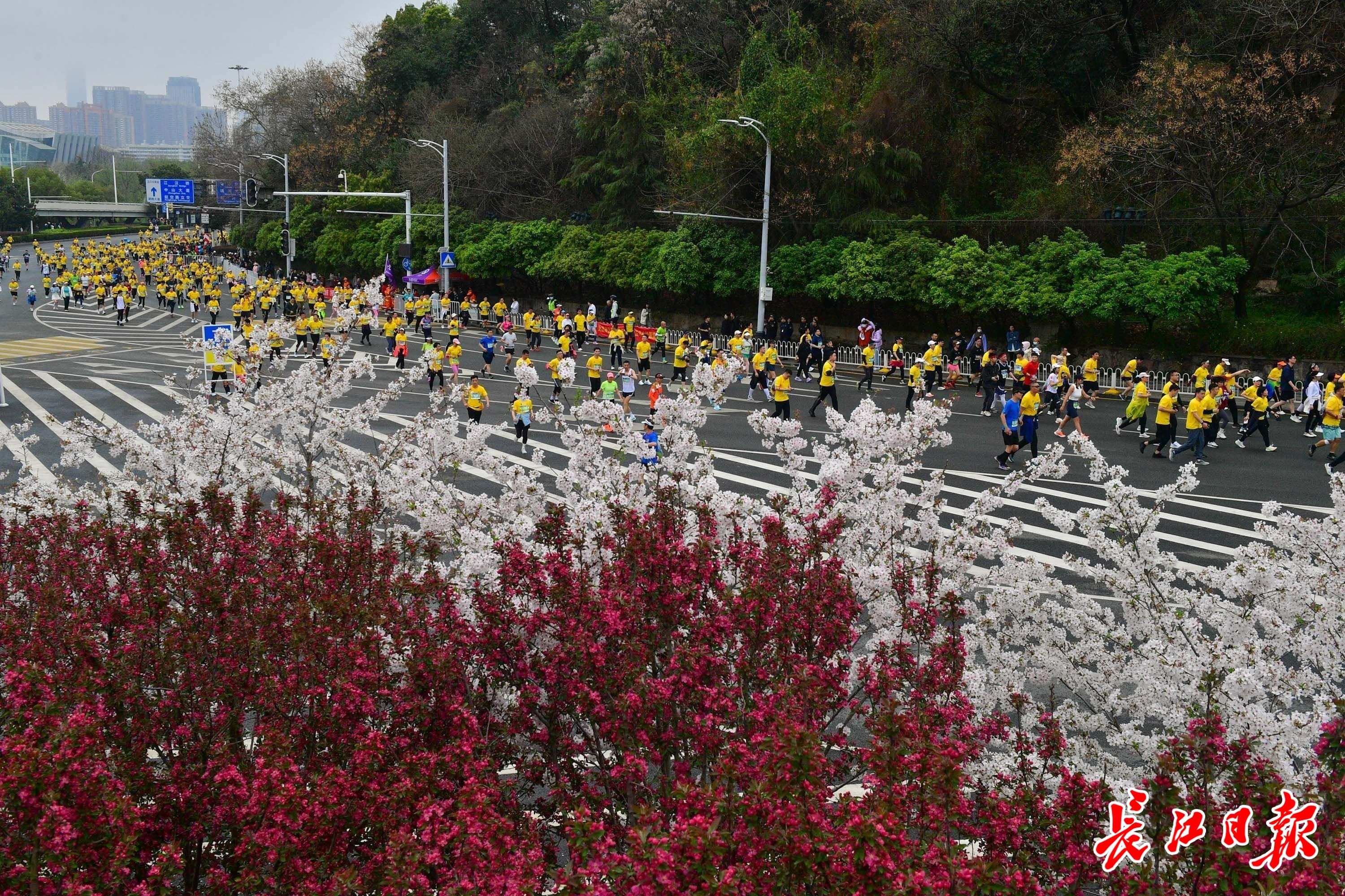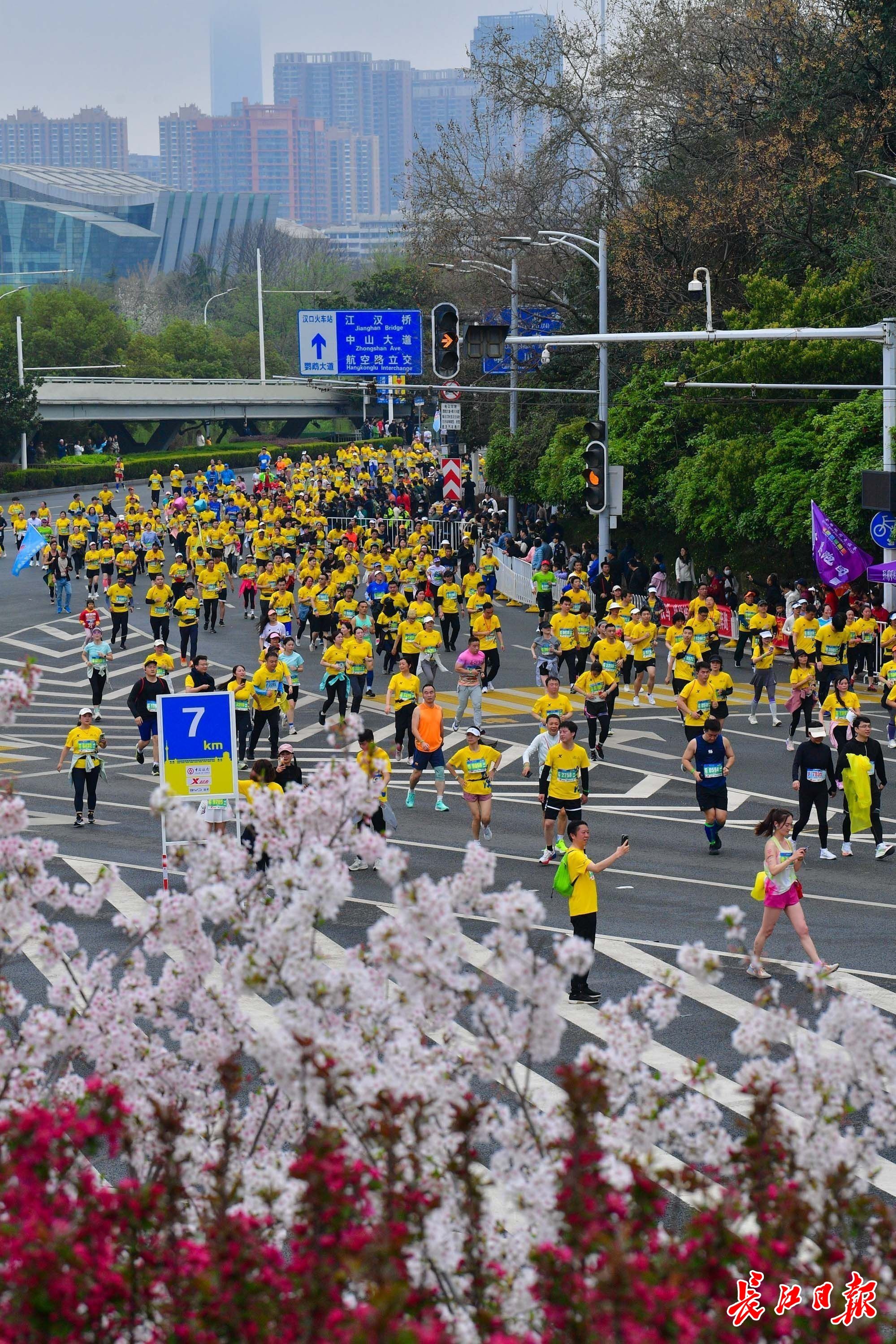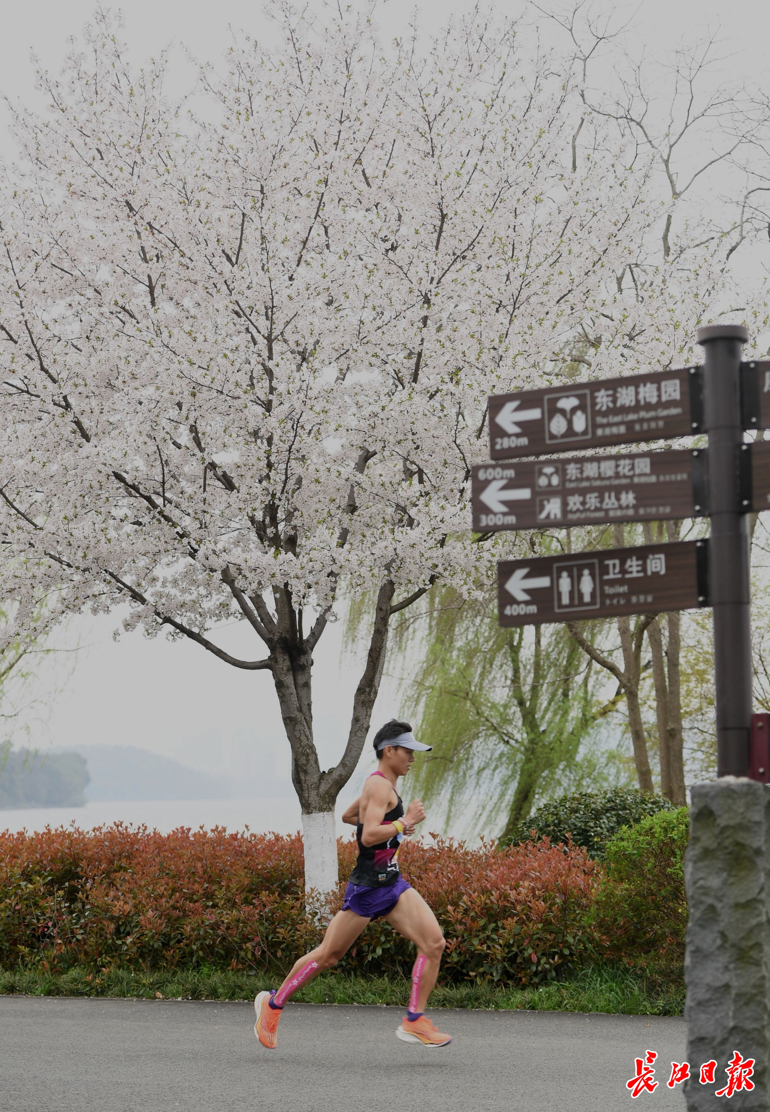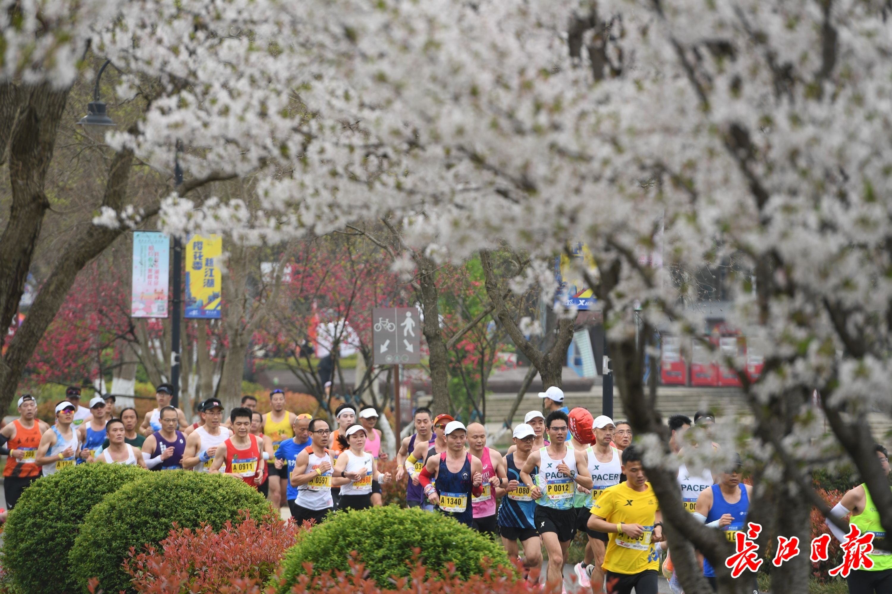 当汉马遇上樱花,又燃又美 ©原创 2024-03-24 10:25 0 3月24日7时30分,2024武汉马拉松鸣枪开跑,30000名来自29个国家和地区的参赛选手一起跨越江湖,奔跑在樱花盛开的江城武汉。这也是汉马举办多年来,首次邂逅最美樱花季,让我们一起来感受最美赛道的魅力。 参加武汉马拉松的选手从汉阳琴台立交桥下的樱花树下跑过。 汉马选手奔跑在樱花绽放的东湖赛道,数百株樱花绽放东湖绿道,浪漫动人。 2024年3月24日,汉马东湖绿道九女墩赛段,在市民的加油助威声中,选手快速跑过樱花赛道。 (汉马摄影报道组 记者李永刚 高勇 胡冬冬) 【编辑整合:赵可】