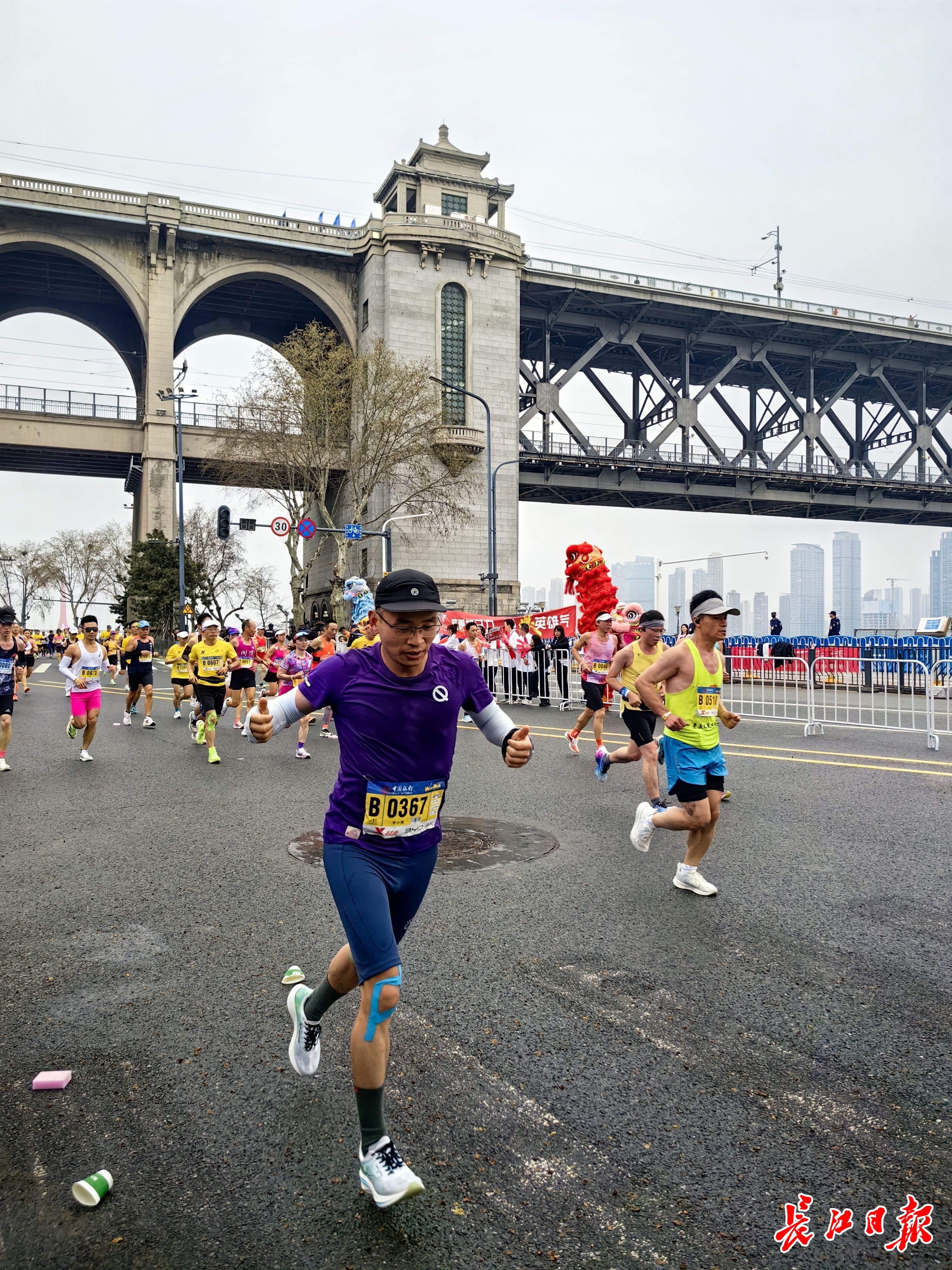市民程女士说,她每年都会来看比赛,早就熟悉了这个“绝佳视角”,今天早上9时就来等待了。“选手跑到终点应该都很累了,我们给他们加加油,说不定就能冲出个好成绩!我们都是汉马比赛的一分子!”她笑着说。