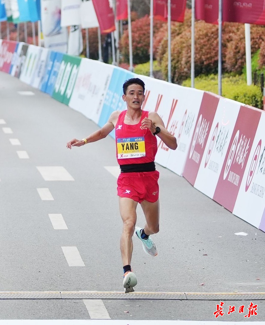 杨定宏以2小时12分07秒的成绩获得中国籍选手男子组第一名。长江日报记者何晓刚 摄