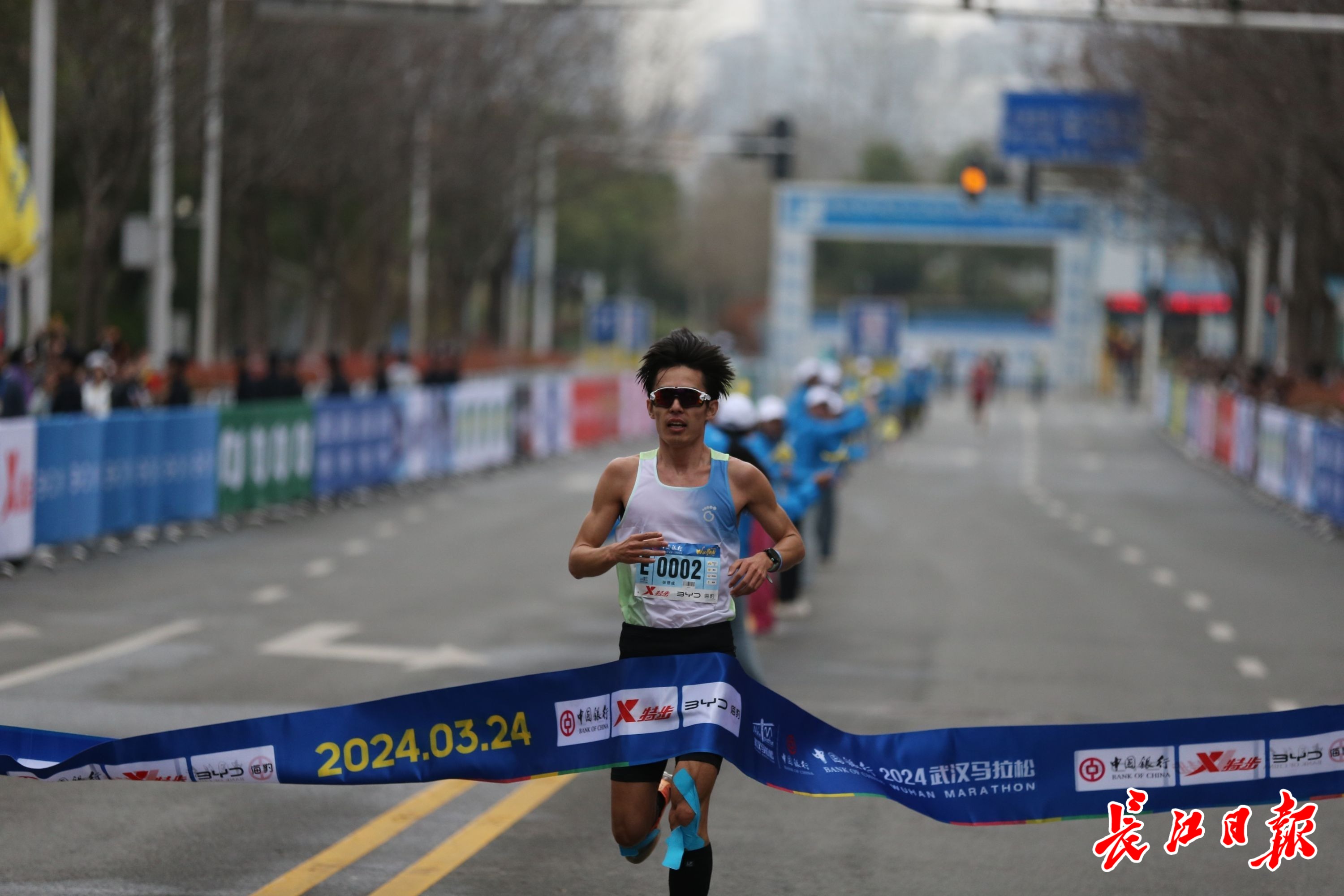 2024武汉马拉松比赛中,27岁的山东选手张德成获得男子半程马拉松项目的冠军。长江日报记者金振强 摄
