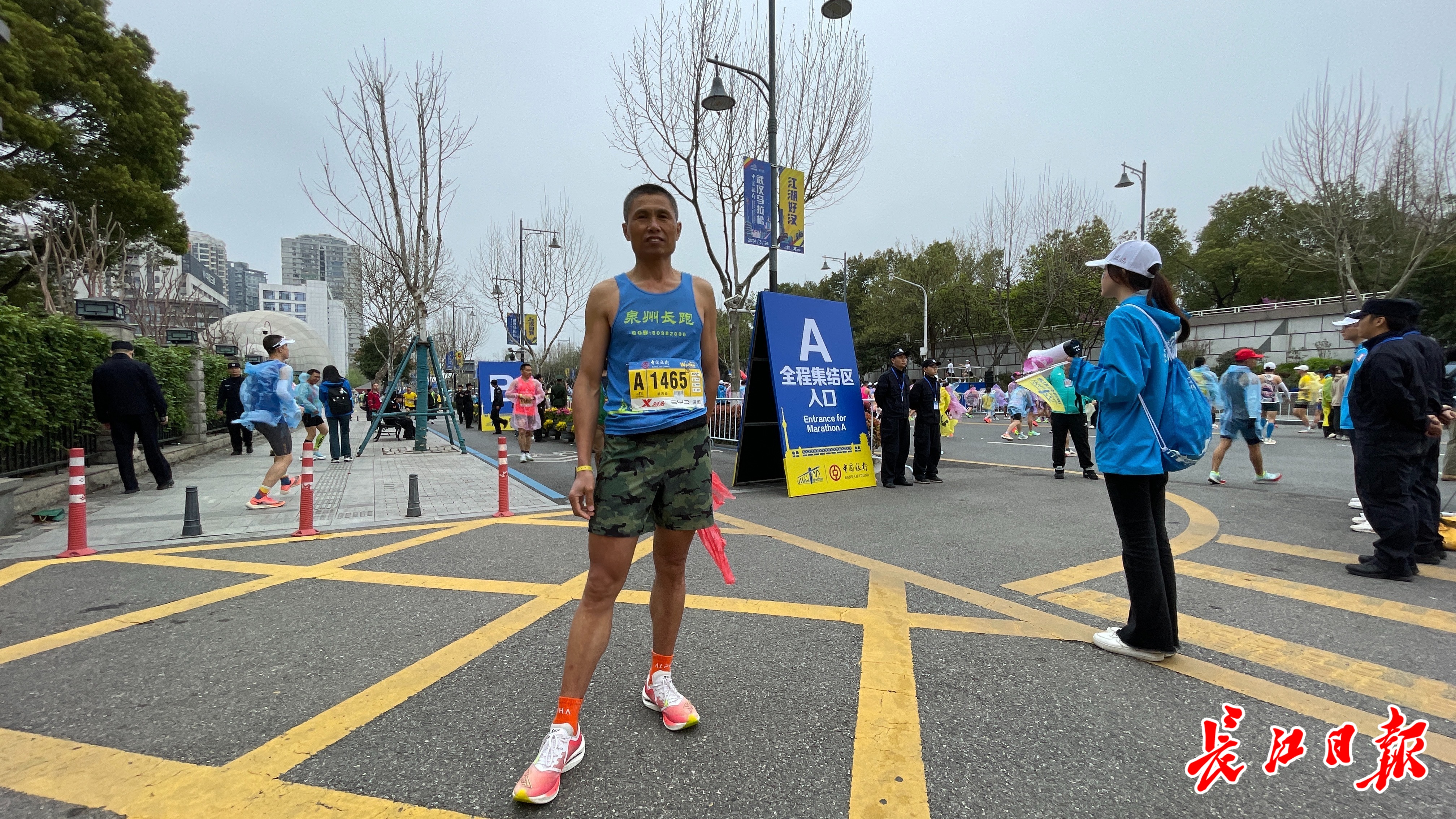 长江日报大武汉客户端3月24日讯(记者杨荣峰)3月24日7时,在汉马起点处,记者见到了来自福建泉州的山地越野跑选手翁志煌,他说,这次汉马重在参与,沿途欣赏东湖、樱花、黄鹤楼等美景。
