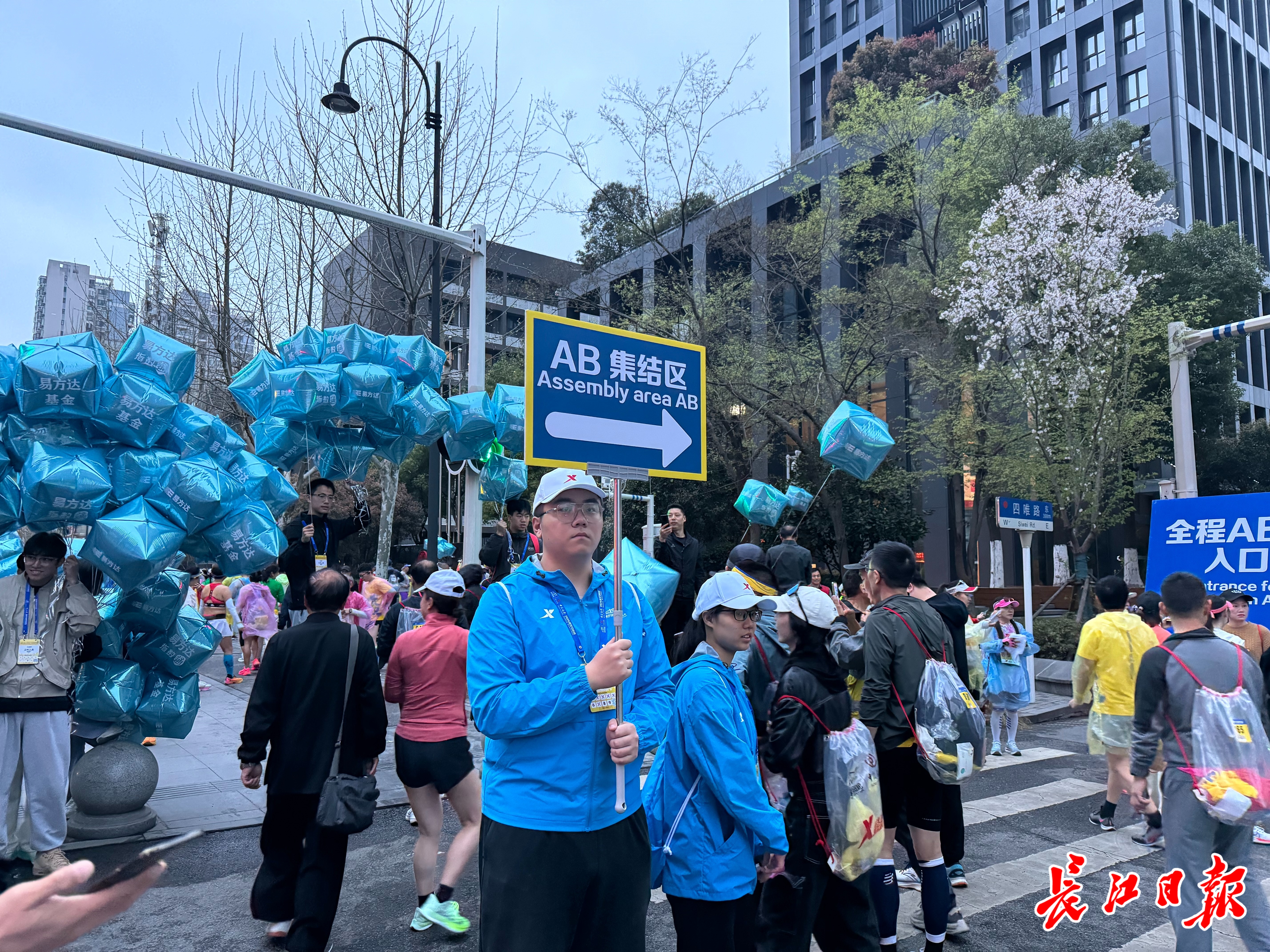 长江日报大武汉客户端3月24日讯(记者唐婧妮)“起点往哪边走啊?”“请问存包的往哪边走?“我的手腕带有问题,在哪里处理?”3月24日清晨5:50,记者在三阳路地铁站J出口看到,身着统一蓝色运动衣,手拿问询气球、指引牌的志愿者为来往的参赛选手耐心解答,热情指引。