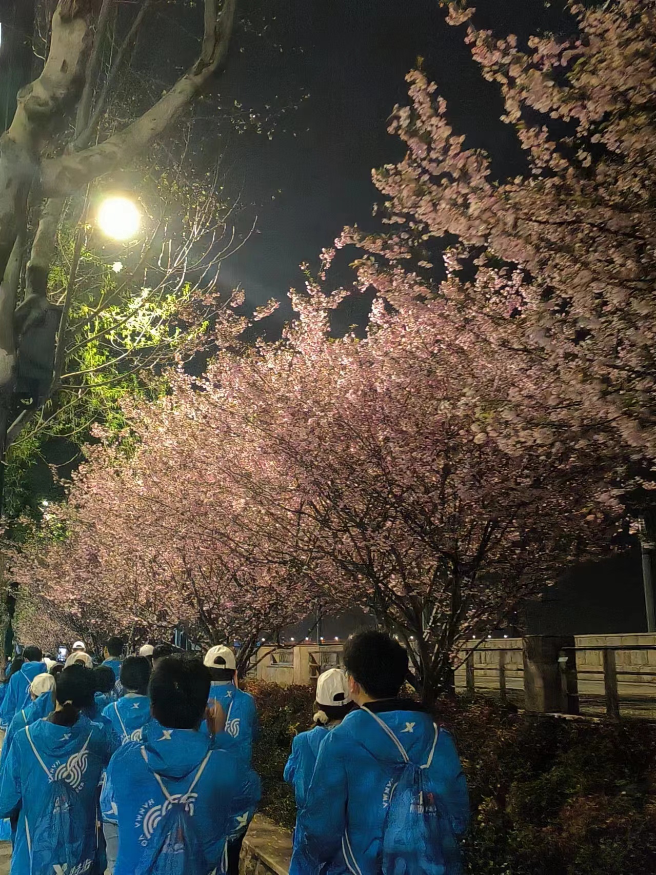 覃思璐和小伙伴们凌晨5时40分抵达大桥,上大桥的路上就发现这片樱花林特别美,当时匆匆拍了两张。比赛中,他们全情投入,没有机会拿出手机拍照。