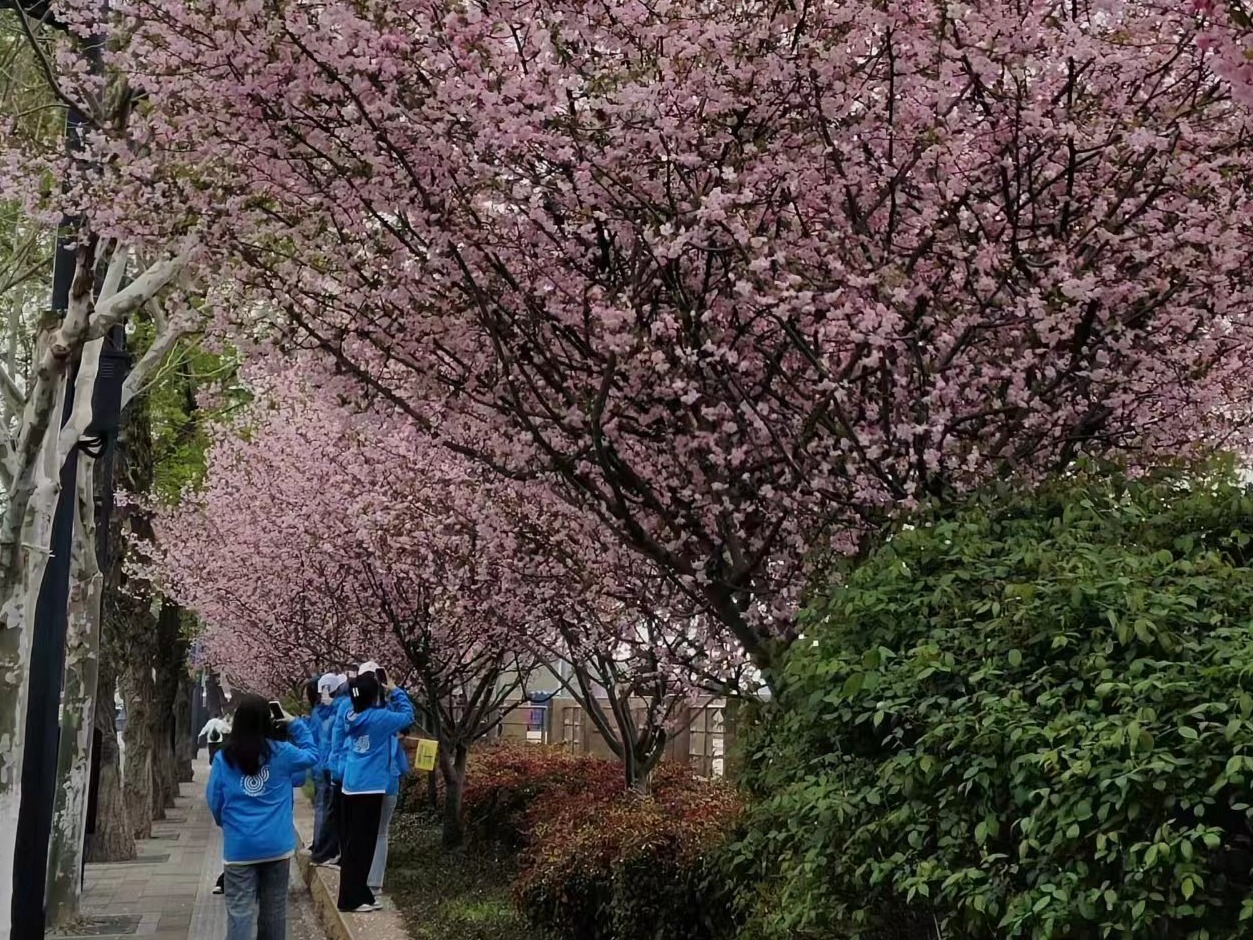 志愿服务结束后,志愿者们拍樱花。