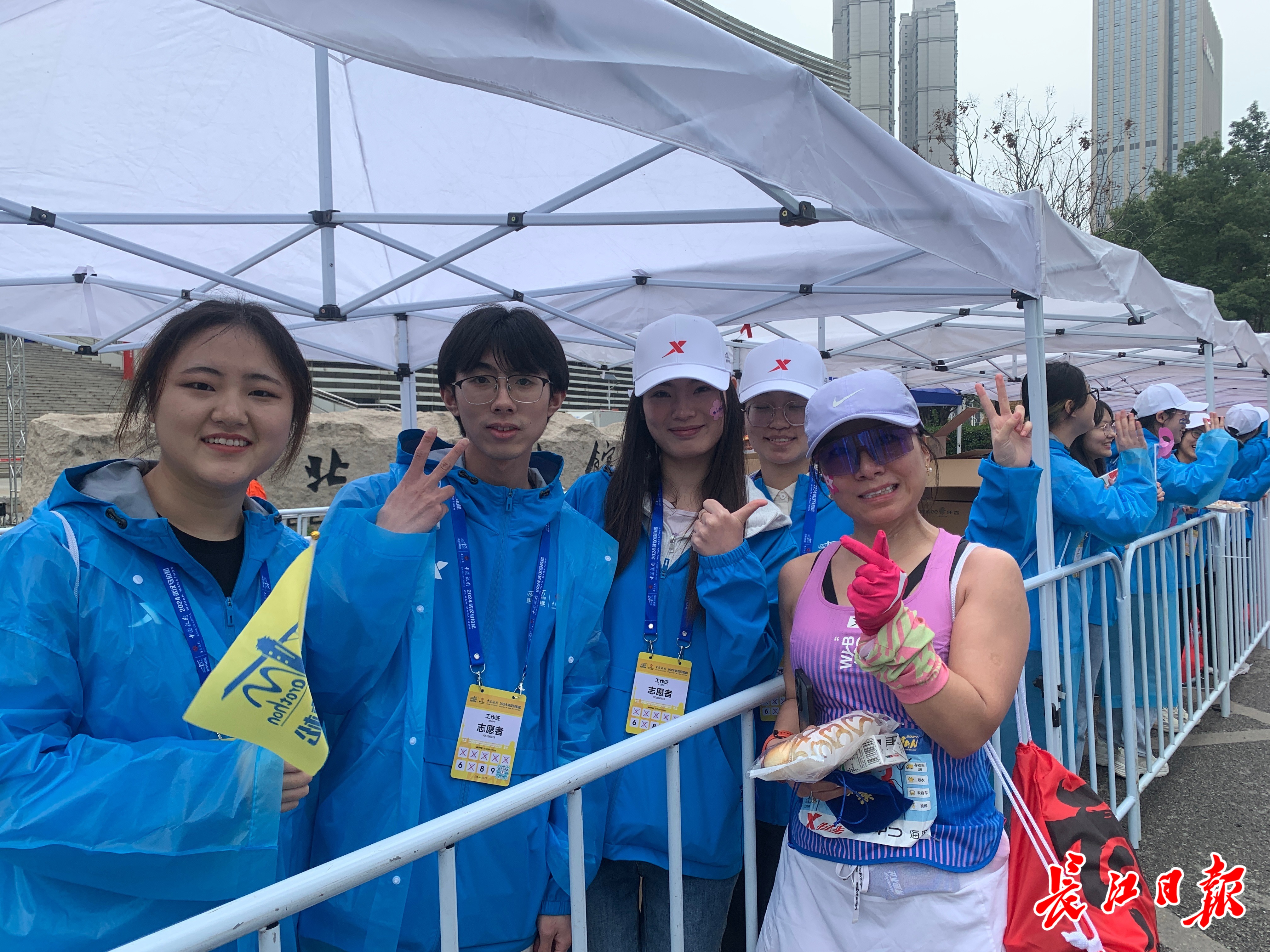 长江日报大武汉客户端3月24日讯(记者江梦晴)“谢谢小美妞!”3月24日,在汉马半程终点赛道补给区,刚刚完赛的周伟娟被汉马志愿者们热情的欢呼声、加油声感染,一手接过面包、牛奶等物资,一手举起手机与洋溢着青春的志愿者们合影。