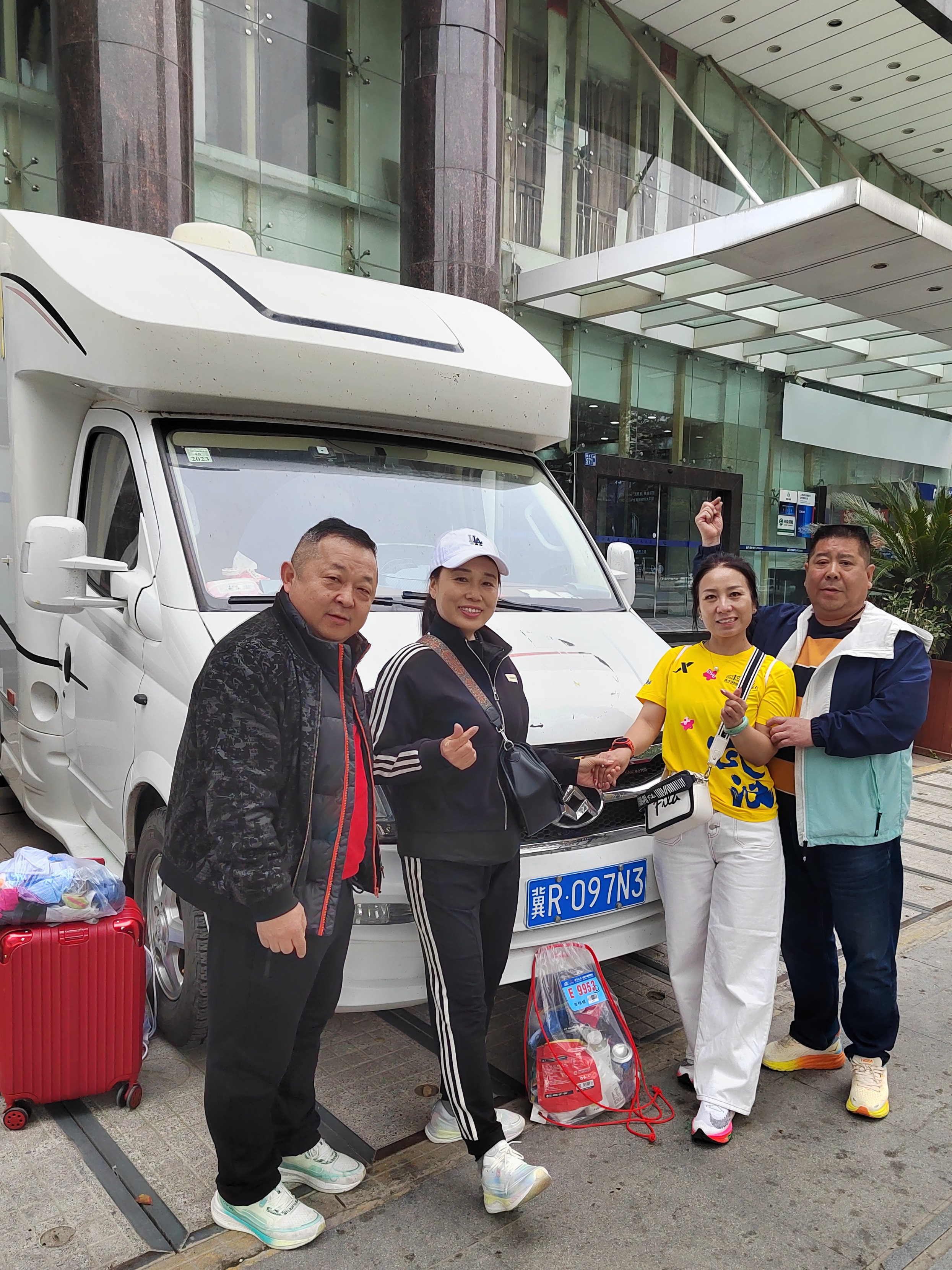 周伟娟和丈夫、闺蜜夫妇四人一起开着房车,跨越千里来汉参加汉马。(本人供图)