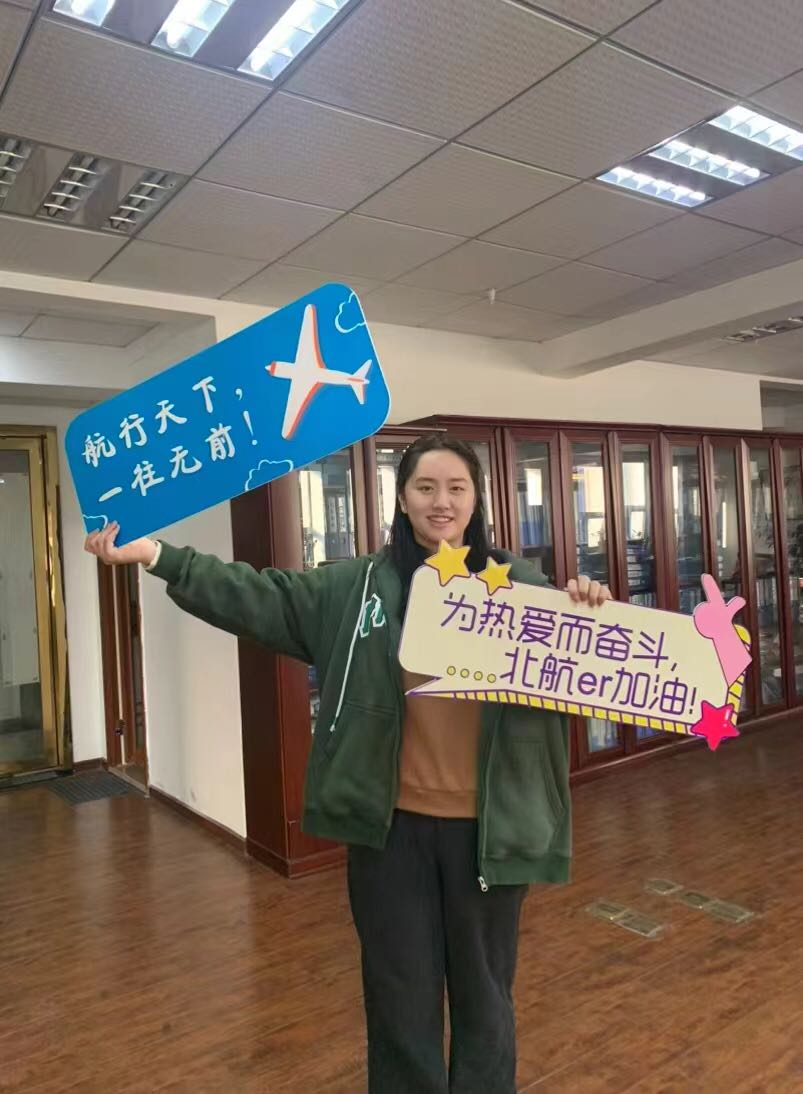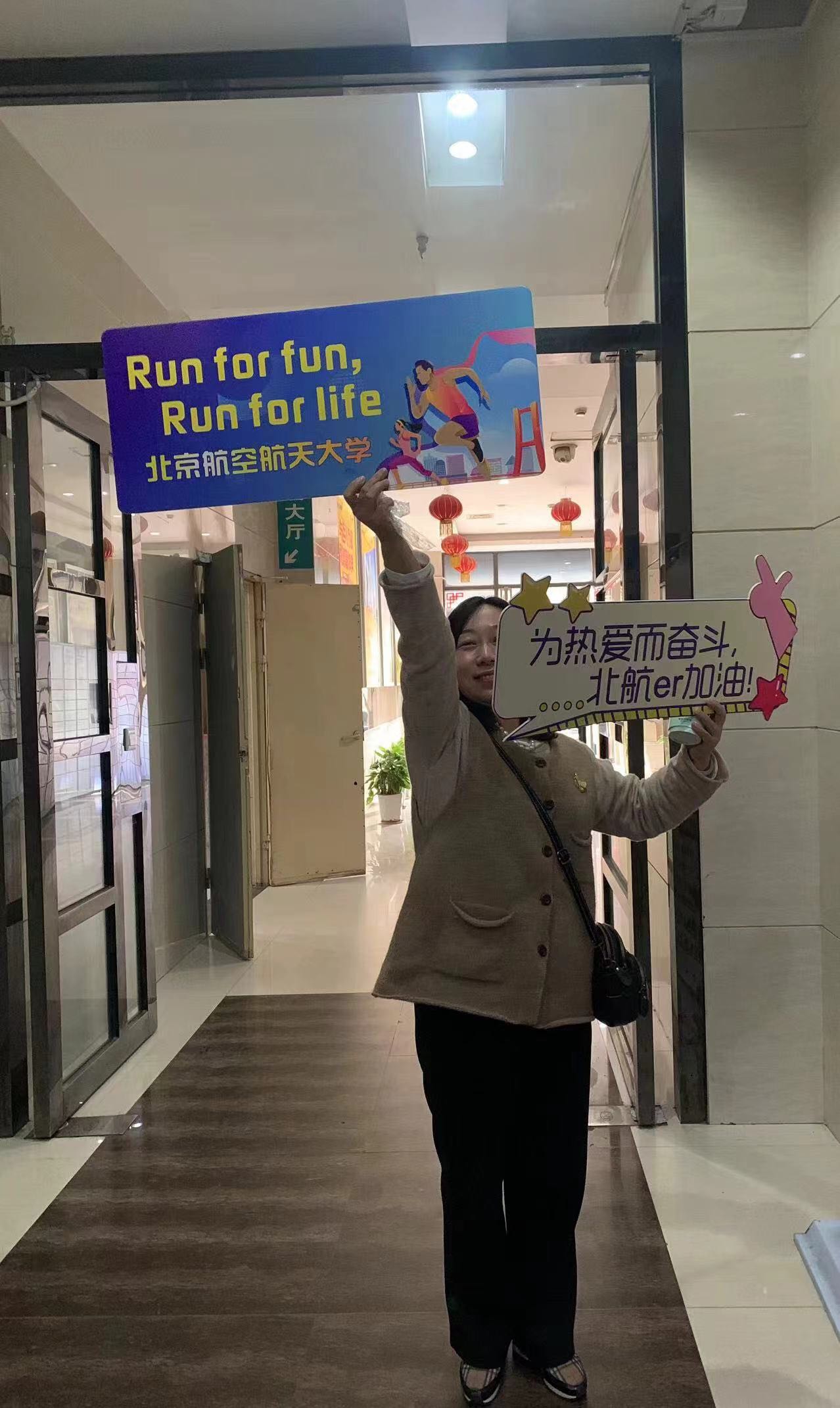 加油手牌举高高,为北航选手加油打气。(受访者供图)
