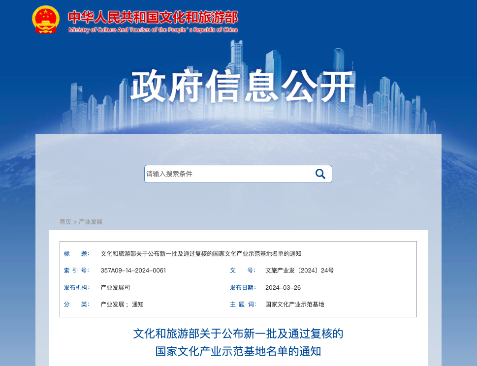 为进一步提升国家文化产业示范基地整体质量,文化和旅游部2023年启动新一批国家文化产业示范基地评选工作,经企业申报、省级文化和旅游行政部门推荐、评审和公示等程序,此次有219家企业被命名为新一批示范基地。