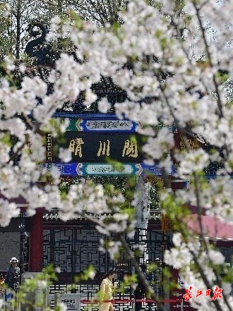 3月26日,龟山公园东门处的樱花与晴川阁同框。记者李永刚 摄