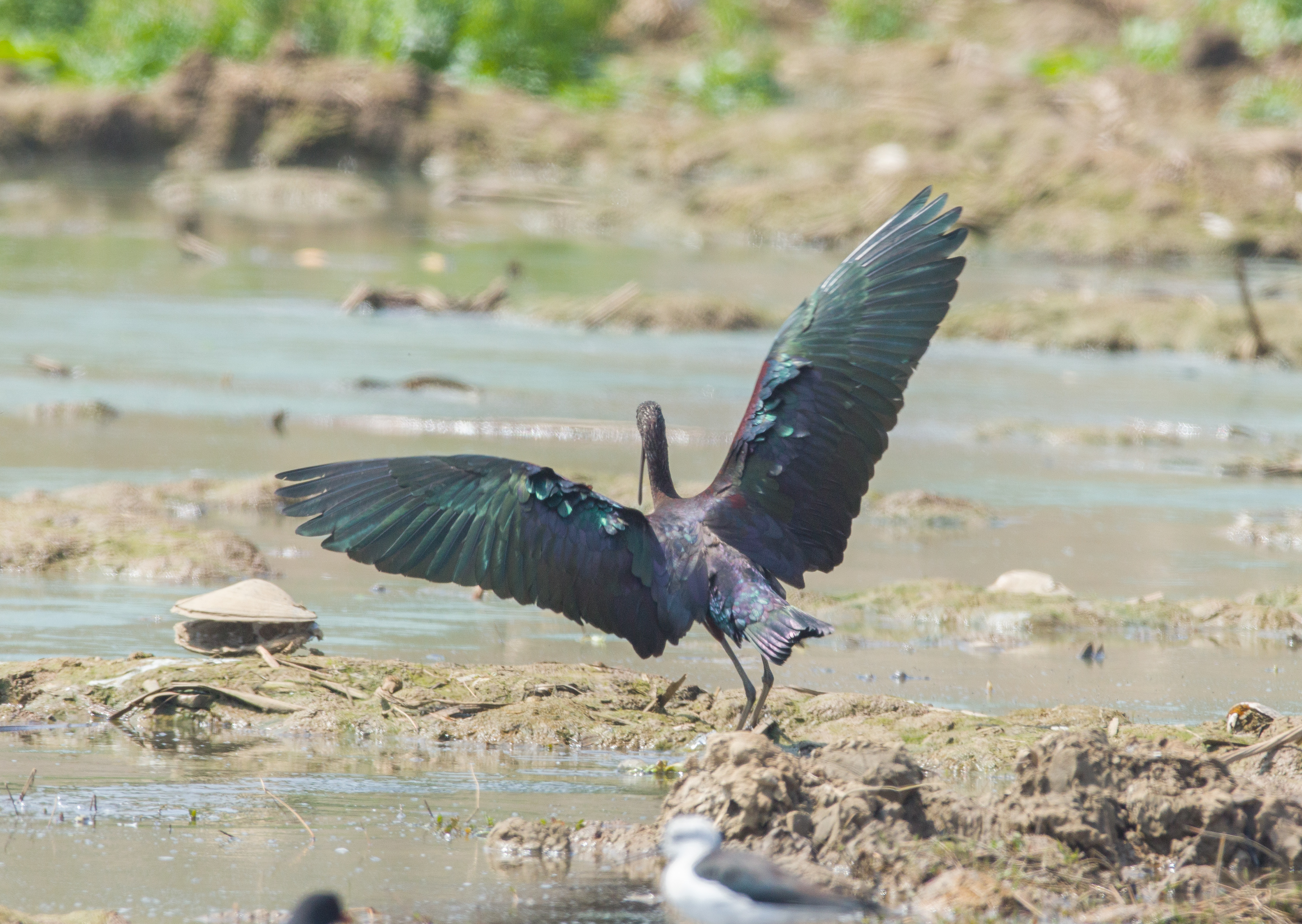 彩鹮是朱鹮的近亲,同为国家一级保护动物。它体形修长,飞行姿态优雅,因上体羽毛带有绿紫金属光泽宛如虹彩而得名。