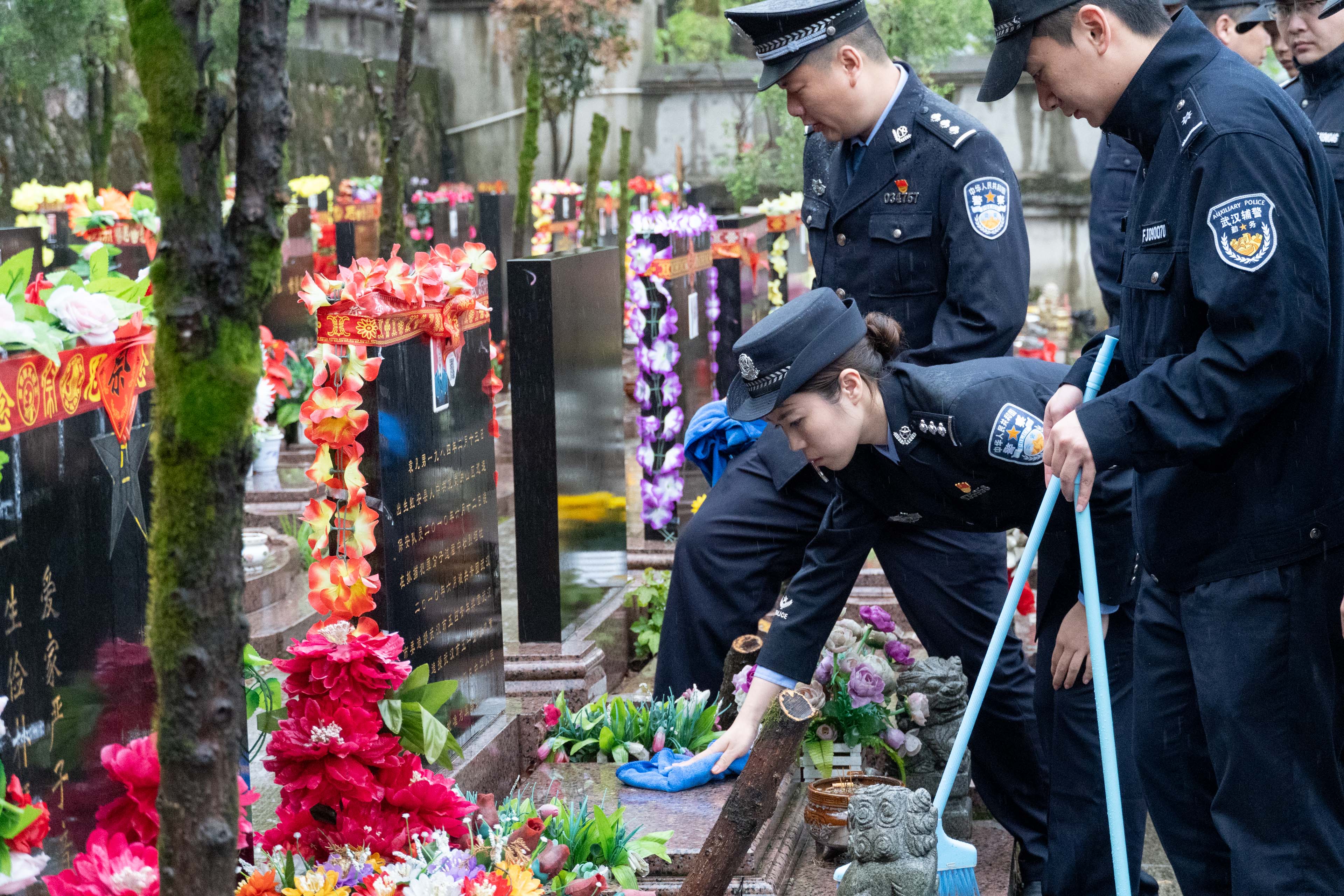 民警辅警给烈士扫墓。通讯员罗维舟 摄