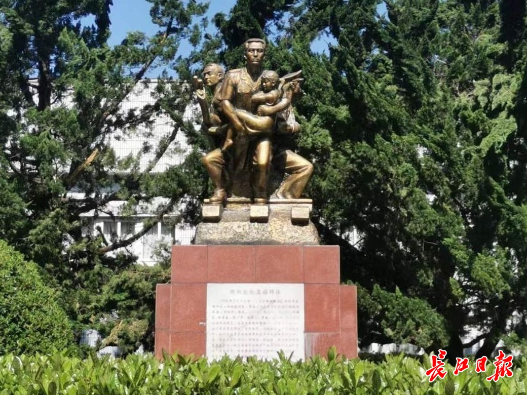 “衡阳抢险英雄群体”塑像,刘晓松位于正中。记者刘睿彻 摄