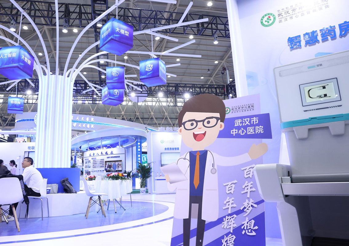 健博会上,武汉市中心医院展馆内的“科技树”引人注目。