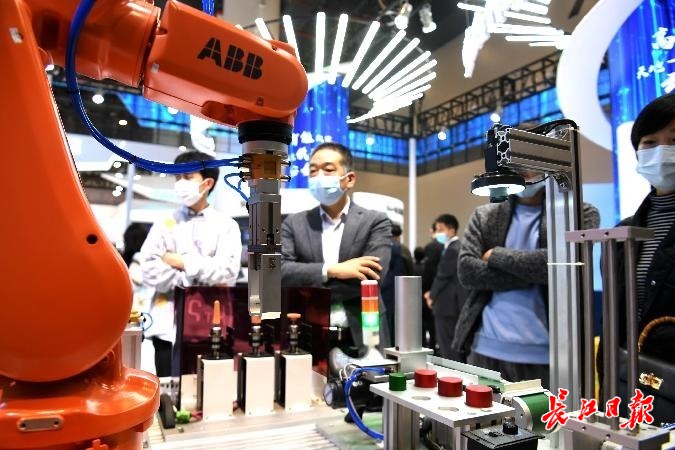 2022中国5G+工业互联网大会上,“5G+工业互联网成果展”一些可视化、场景化、沉浸式、互动式体验展区吸引参观者。长江日报记者高勇 摄