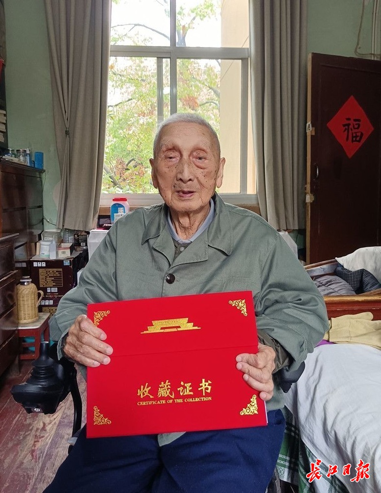 洪亮老人展示湖北革命军事馆发给他的收藏证书。记者陈其雄 摄