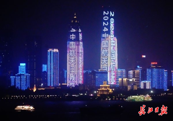 中国航天日,“楚天星汉”映江中 ©原创 2024-04-24 22:48 0 长江日报大武汉客户端4月24日讯 4月24日晚,以“极目楚天,共襄星汉”为主题的灯光秀在两江四岸点亮,沿江建筑上纷纷亮起“2024中国航天日我在武汉等你”“极目楚天,共襄星汉”等字样。 (长江日报记者何晓刚 刘斌 摄影报道) 【编辑:丁翾】
