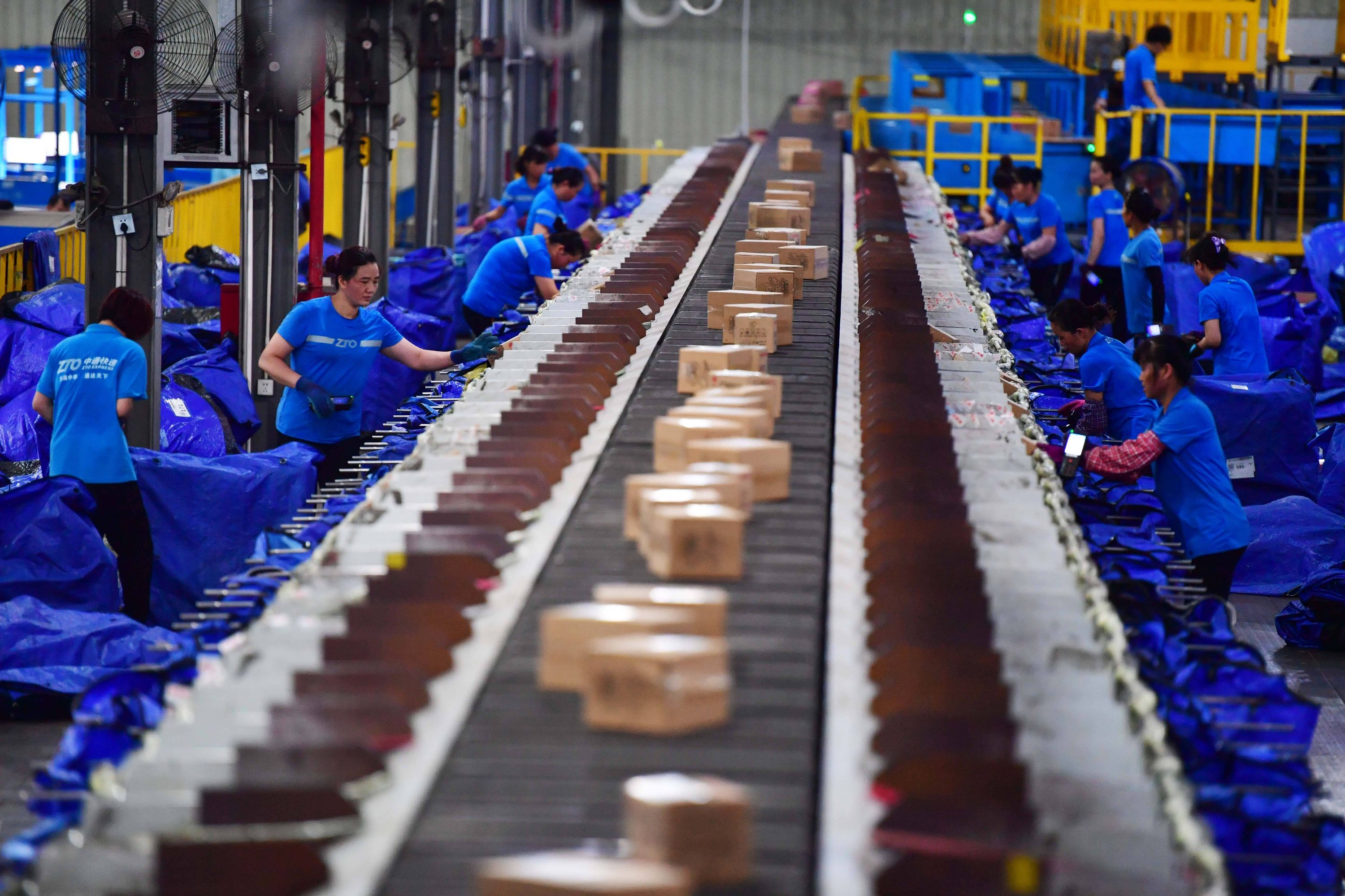 中通快递转运中心,员工对快件进行分拣。新华社资料图