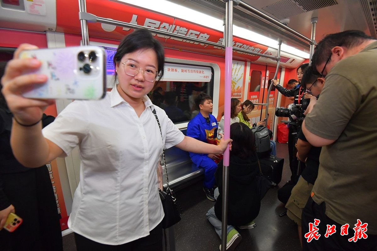 武汉楷模杨保凤登上地铁“劳动者号”。记者刘斌 摄