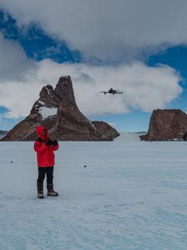 褚馨德正使用无人机,深入南极大陆内部进行航测。