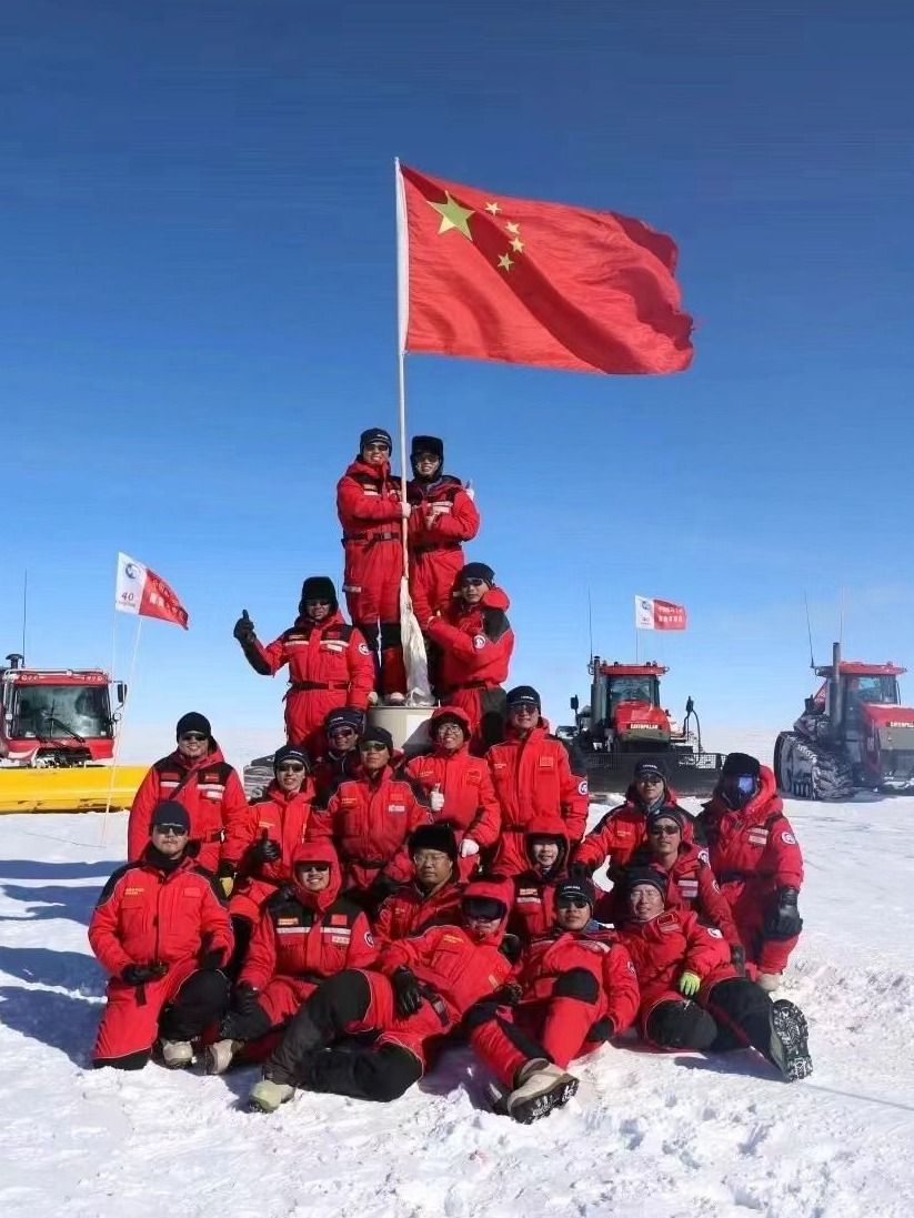 中国国旗插上南极内陆最高点。