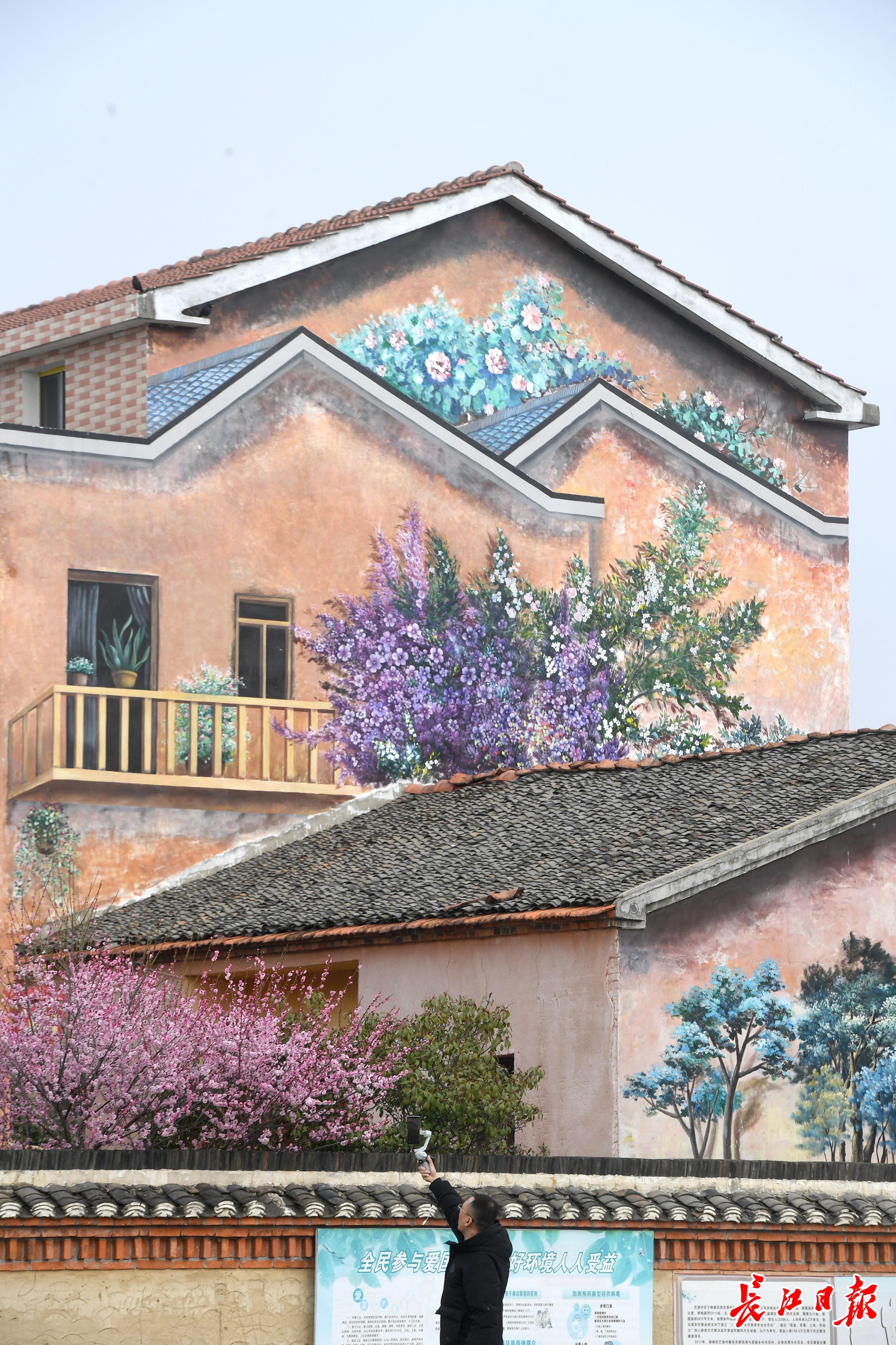 游客用手机记录美丽乡村彩绘墙。长江日报记者周超 摄