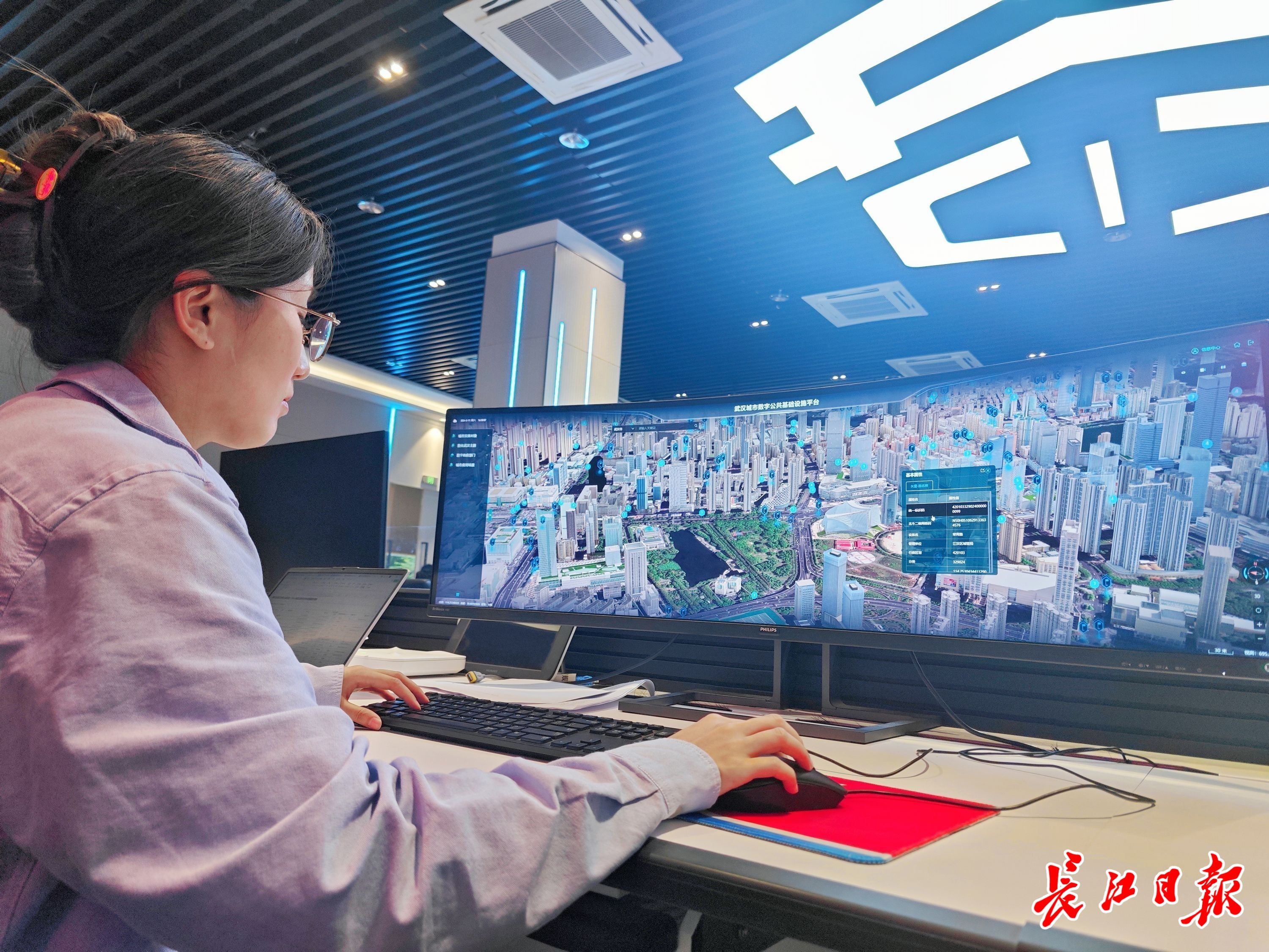 在近1米长的曲面电脑屏幕上,蓝色的长江水域从中间穿流而过,两岸的建筑物如积木,高低错落。轻滑鼠标,沿江大道附近的礼堂、广场上的雕塑以及公园小径都看得一清二楚,一个真实的武汉就这样展现在眼前。