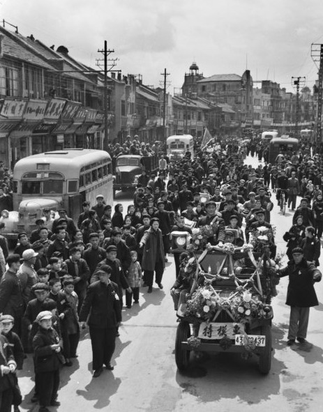 上世纪50年代,武汉市每年评选出来的特等劳模都要披红挂彩,接受市民的夹道欢迎。