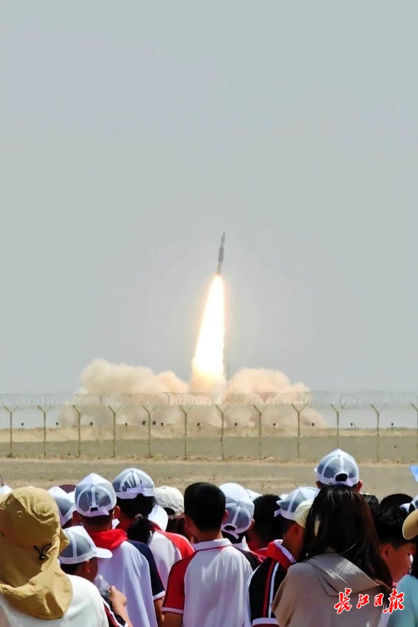 酒泉师范附属学校五年级学生们现场观看火箭发射。