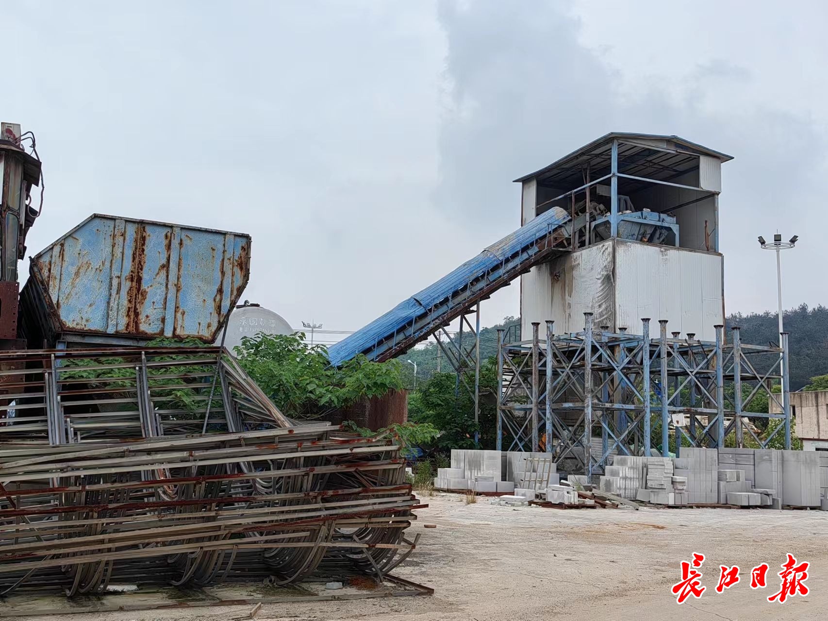 临时工棚一侧的搅拌站,已停用多时。记者金文兵 摄